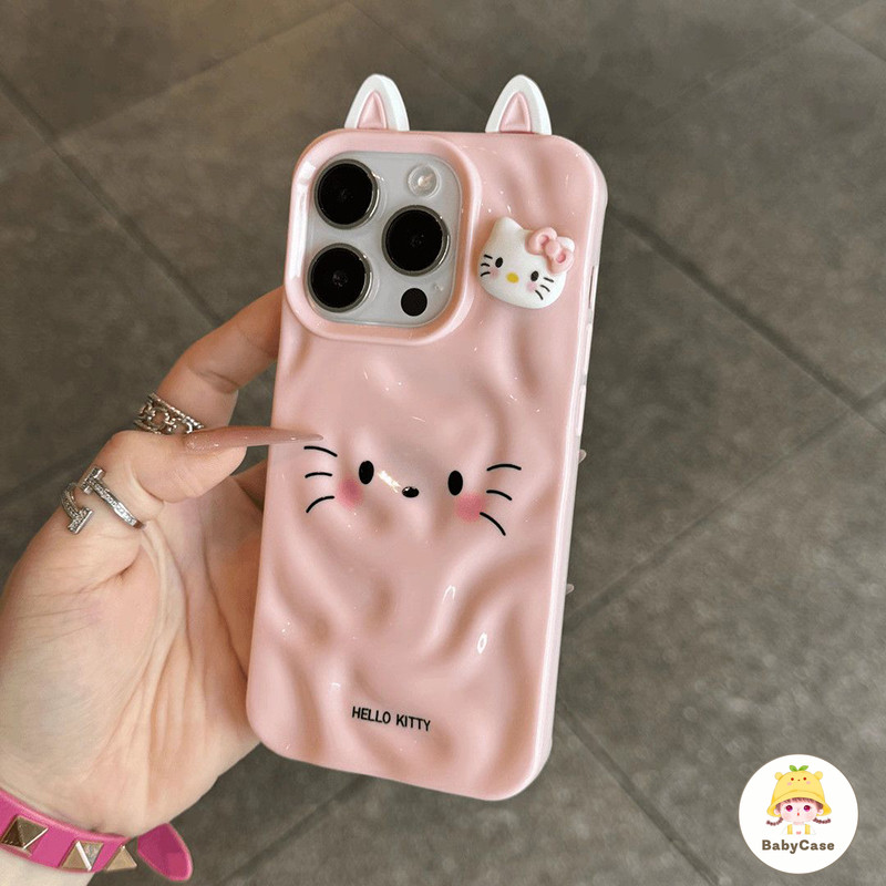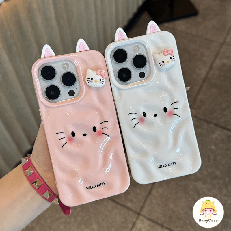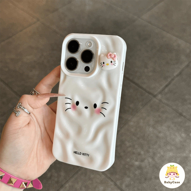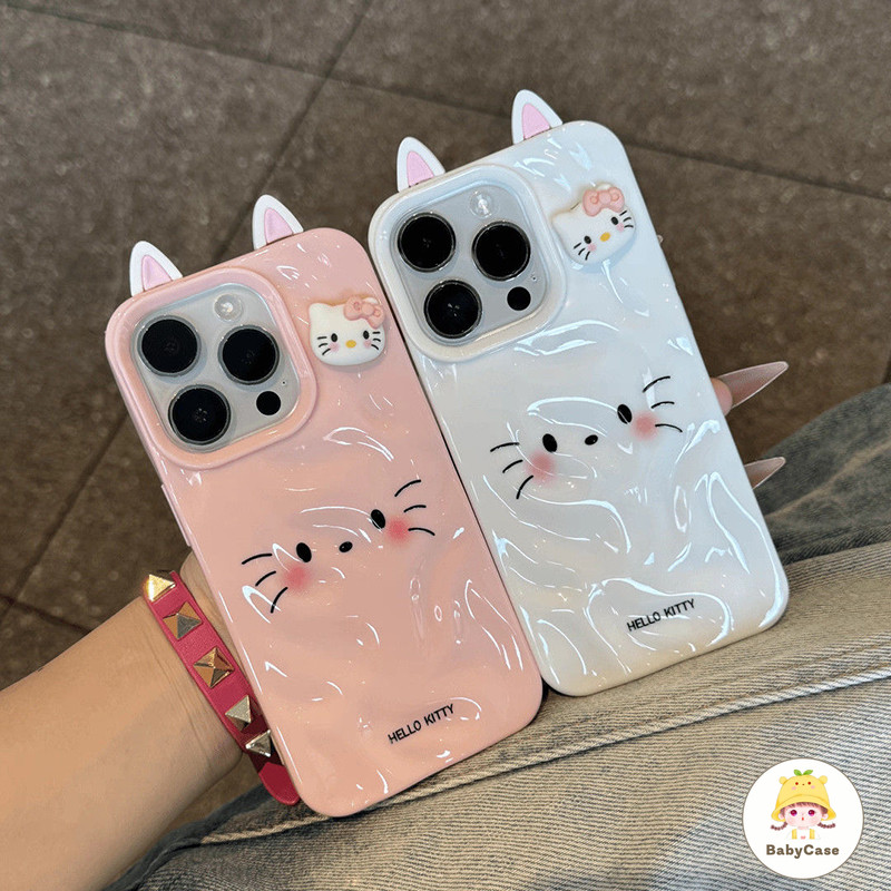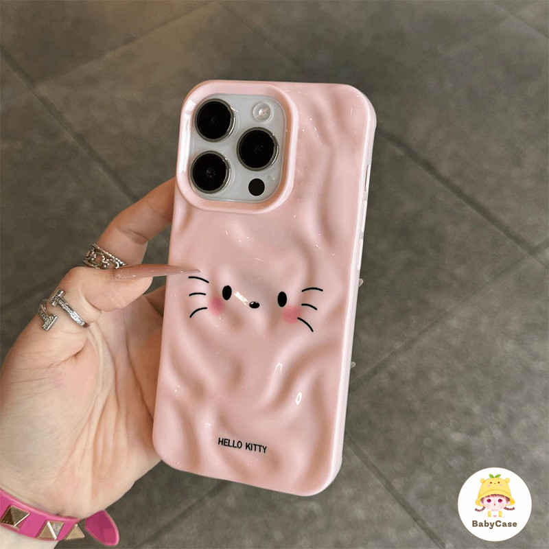 เคสไอโฟน 11 สำหรับ iPhone 16 15 13 11 14 12 Pro Max 15 14 16 6 6S Plus XR X XS คิตตี้คลื่นน่ารักน้ำนัวเนียมันวาว