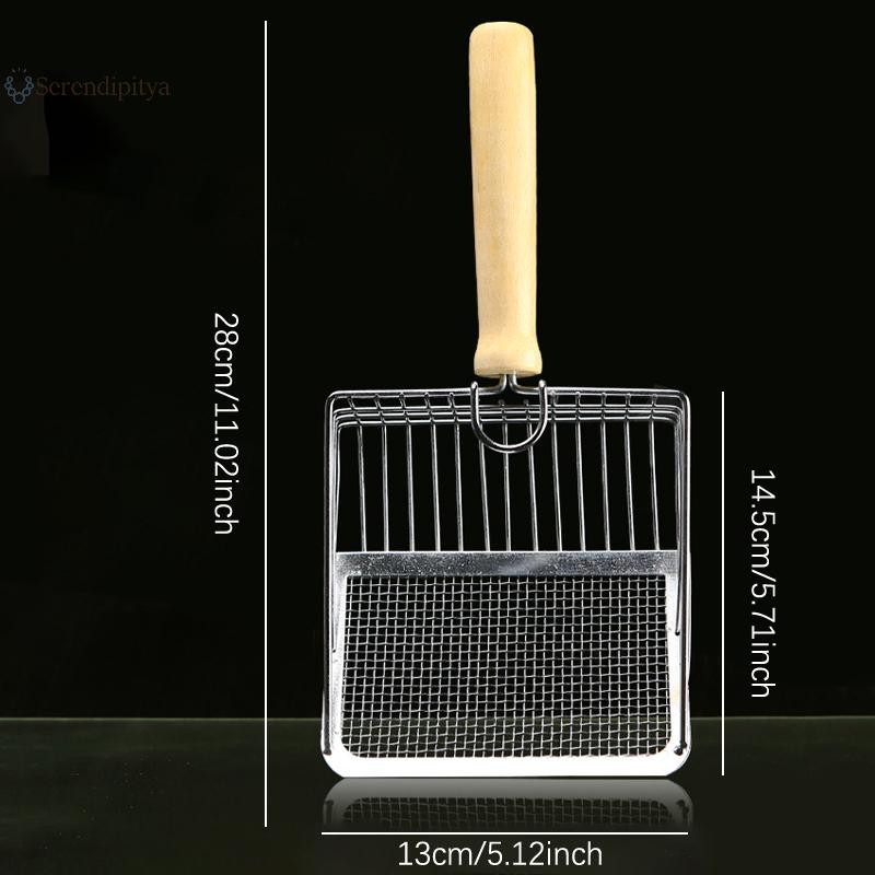 SEE Cat Litter Shovel สแตนเลสด้ามไม้ Easy To Rust ล้างทําความสะอาดได้ลูกแมว Litter Scoop แมวห้องน้ําทําความสะอาดพลั่วเครื่องมือ TH