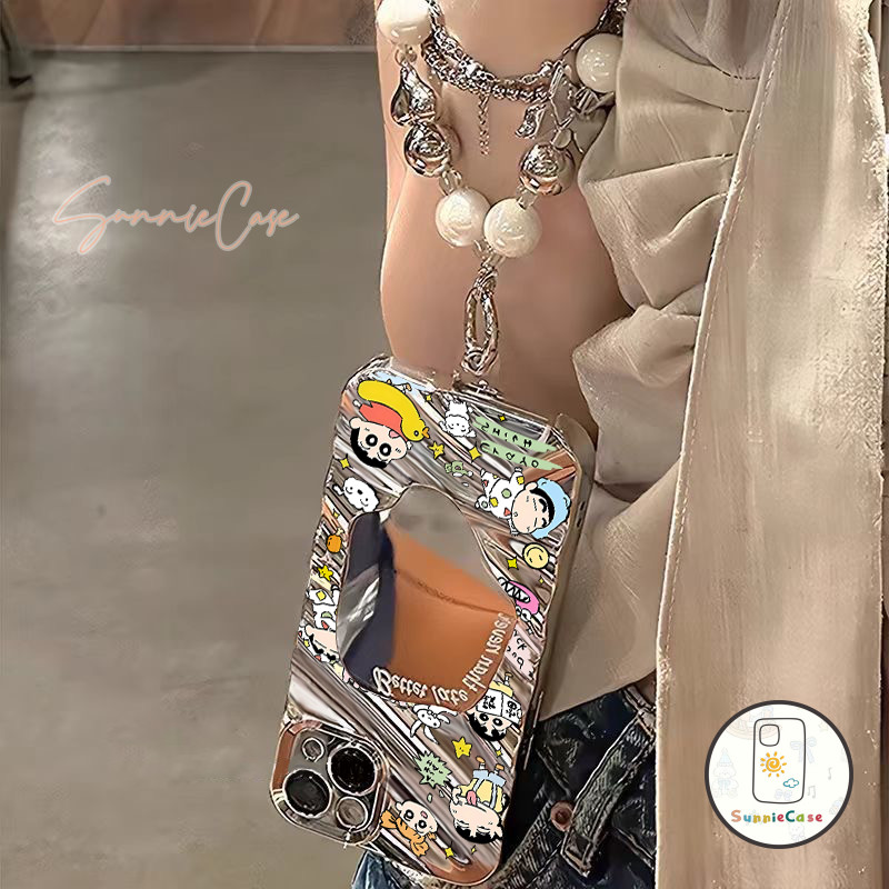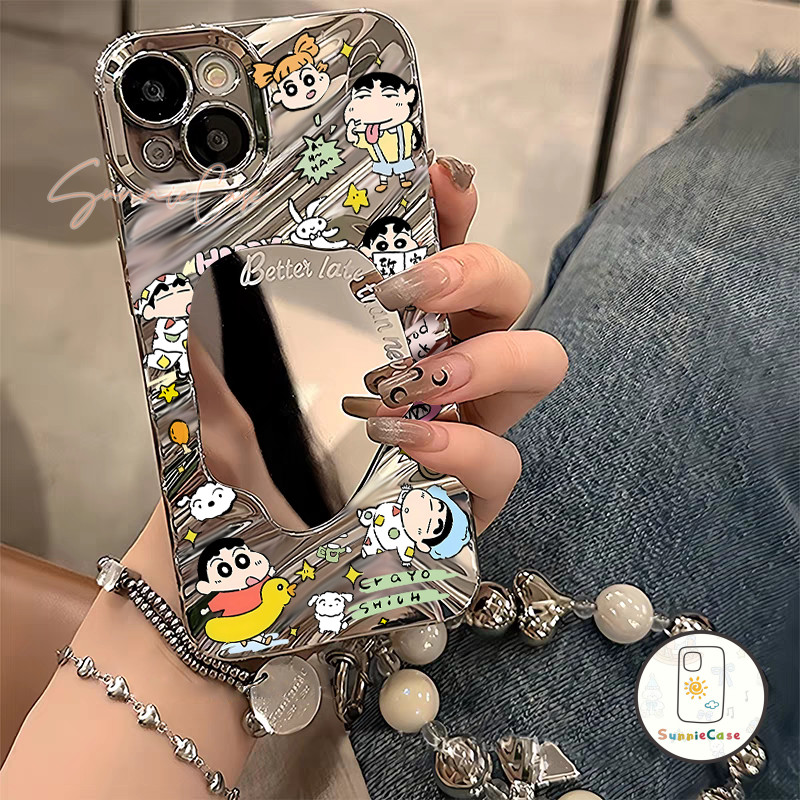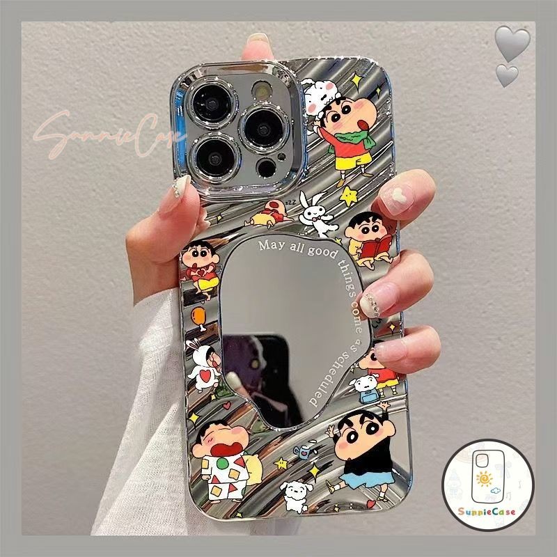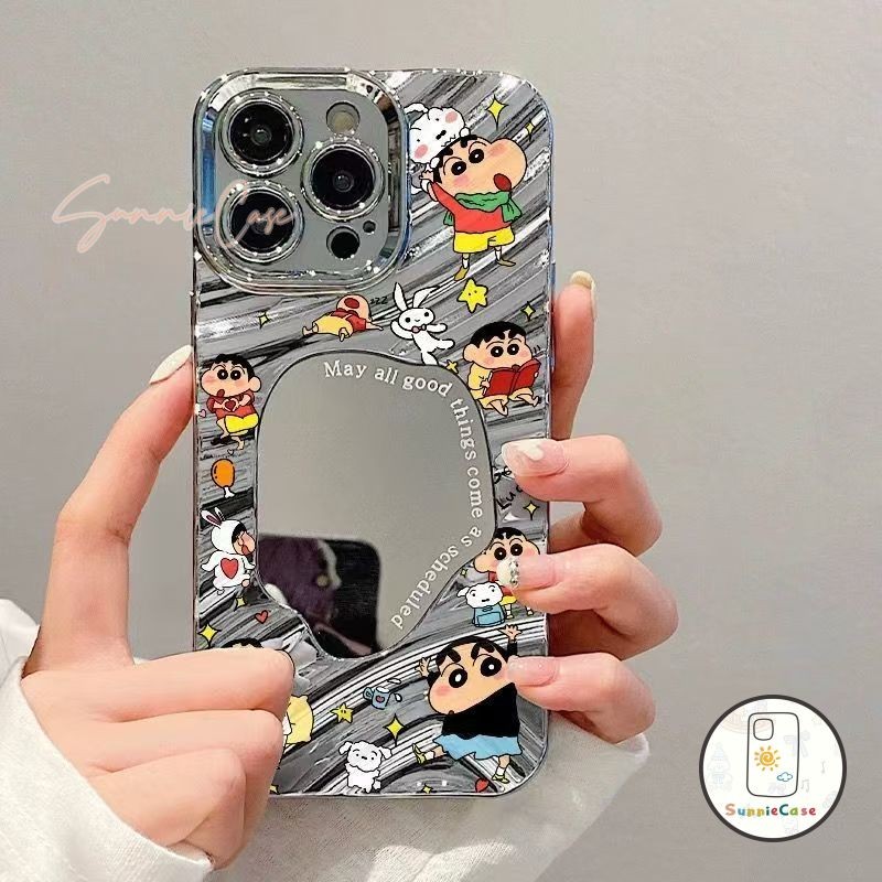 การ์ตูน เคสไอโฟน12 เหมาะสำหรับ IPhone 15 7 13 11 16 14 Pro Max XR XS X Max 7 8 Plus เคสโทรศัพท์กระจกแต่งหน้า เคส ชินจัง