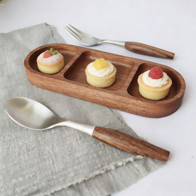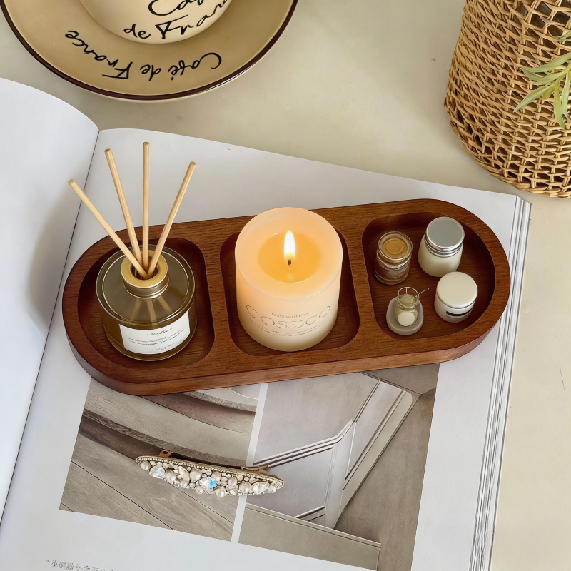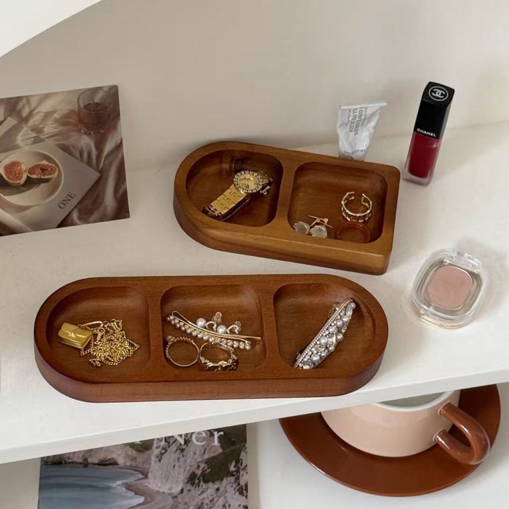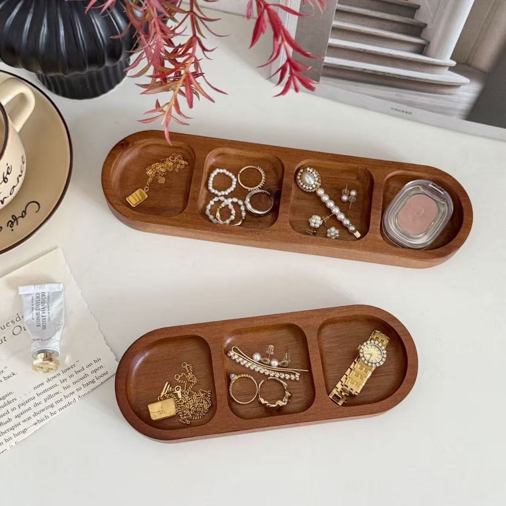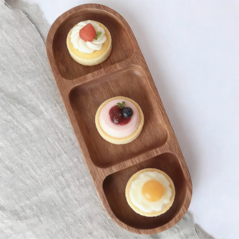 ไม้เนื้อแข็งถาดเก็บน้ําหอมอโรมาเครื่องประดับถาดเก็บจุ่มปรุงรสช่องจานปรุงรสจานขนมขบเคี้ยวขนาดเล็ก ที