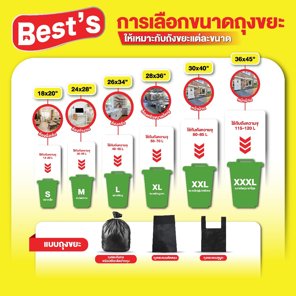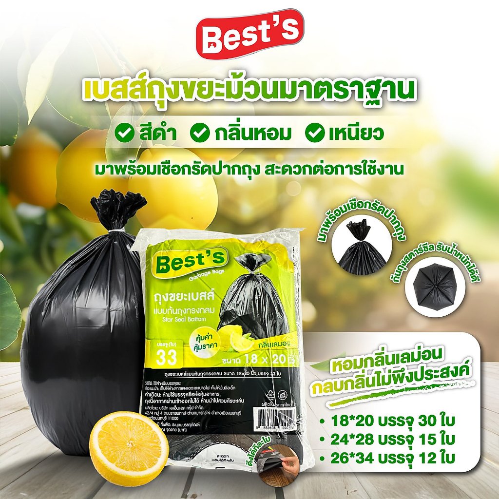 [แบบยกแพค] ถุงขยะมาตรฐานก้นกลมพร้อมเชือกรัดปากถุงแบบแพ็ค กลิ่นเลม่อน เบสส์ V.1 เลือกขนาดได้