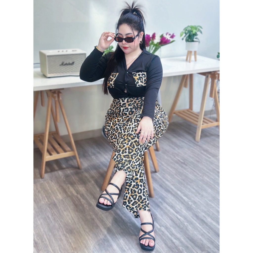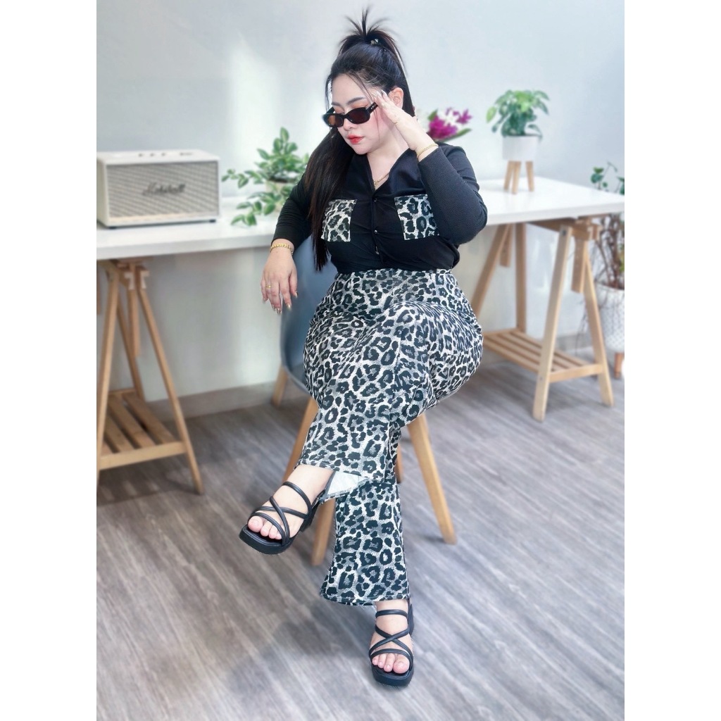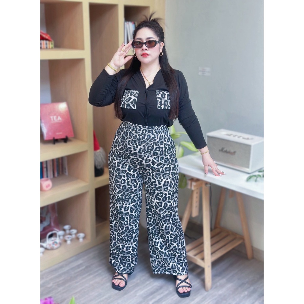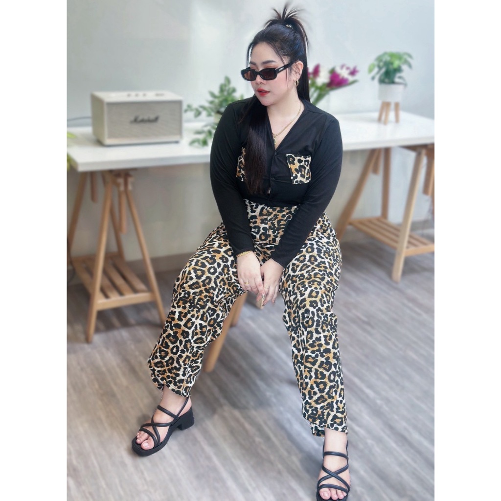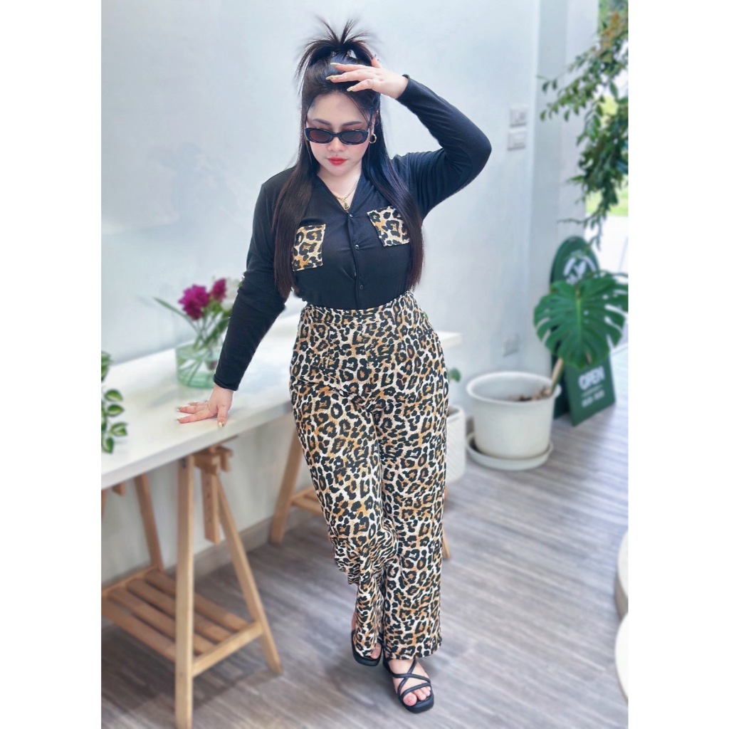 เซ็ตนี้มาพร้อมกับเสื้อแขนยาวผ้าร่องและกางเกงขายาววูลเวฟ ดีไซน์เอวสม็อคหลัง ให้ค