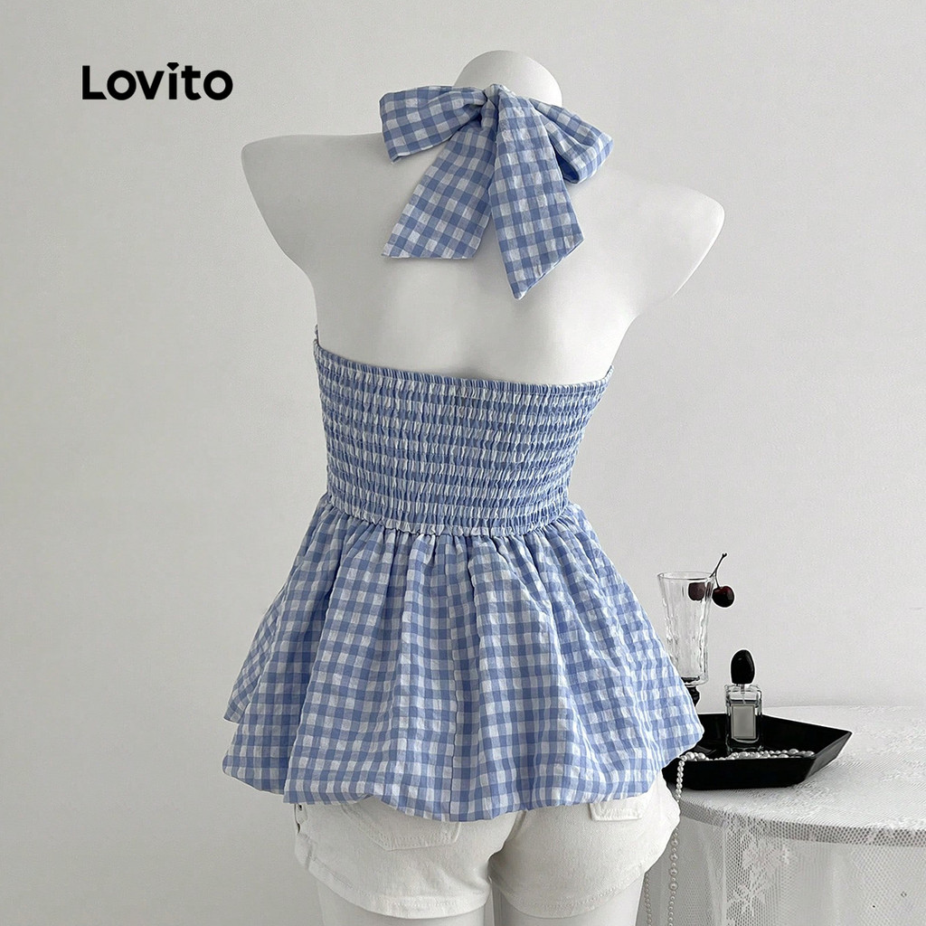 Lovito เสื้อครอปแบบผูกเชือก ลายจุด ผ้านิ่มและสบาย สำหรับฤดูใบไม้ผลิ/ฤดูร้อน L145ED030