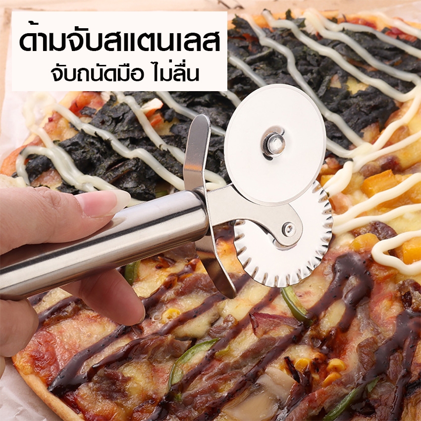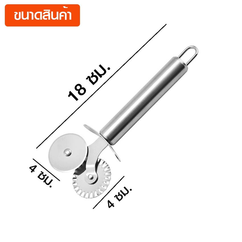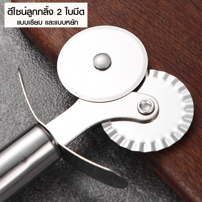 Marino Home มีดหั่นพิซซ่า แป้ง ที่ตัดพิซซ่า มีดกลม 2 หัว แบบตรง/หยัก ***ลอกสติกเกอร์ที่ลูกกลิ้งก่อนใช้งาน*** No.Y1714