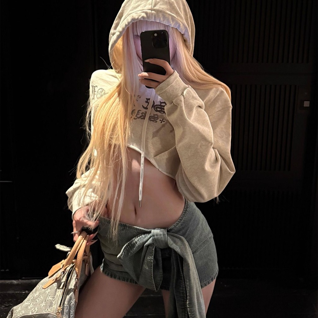 เสื้อกันหนาวฮูดดี้ทรงสั้นสำหรับผู้หญิง สไตล์ Chic ในฤดูใบไม้ผลิและใบไม้ร่วง ออกแบบบางเบาและทันสมัย