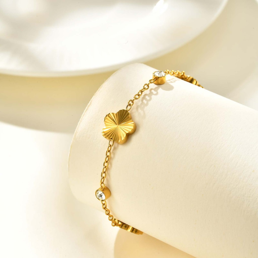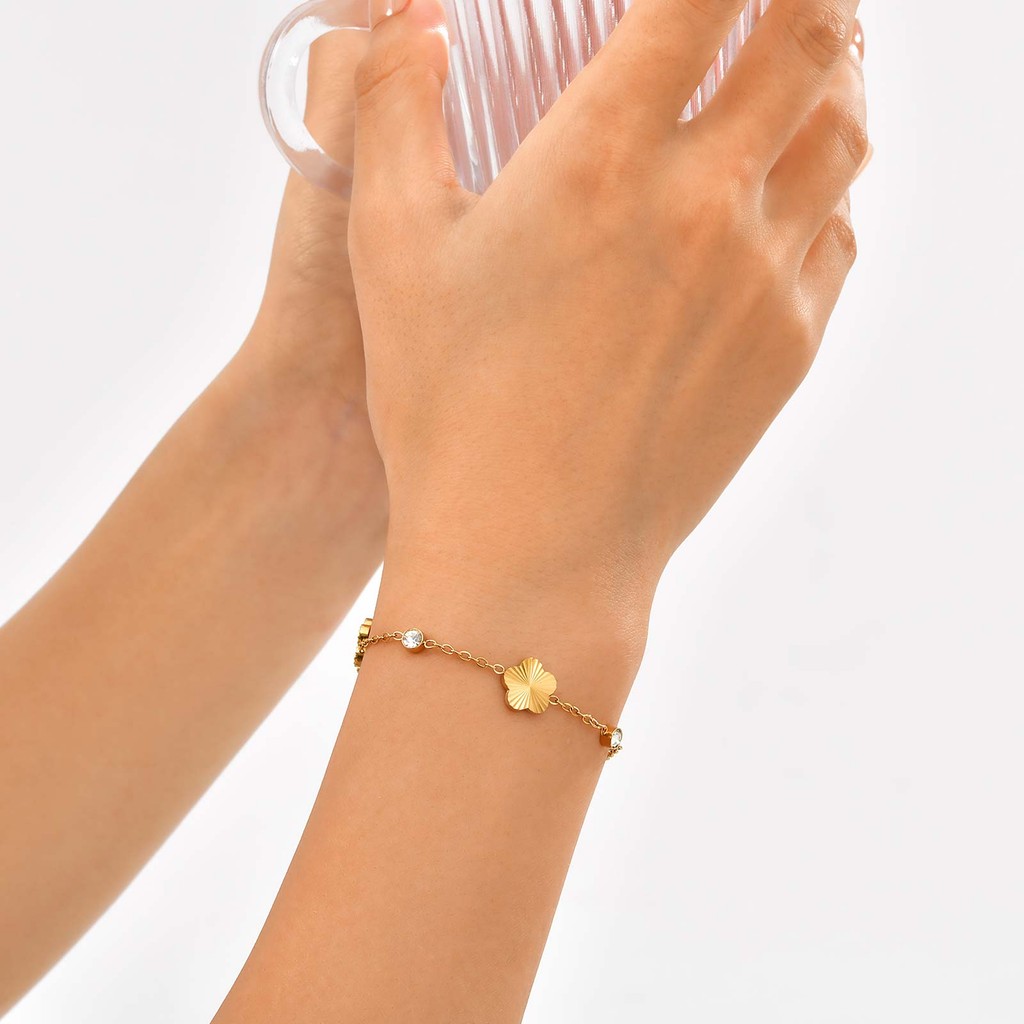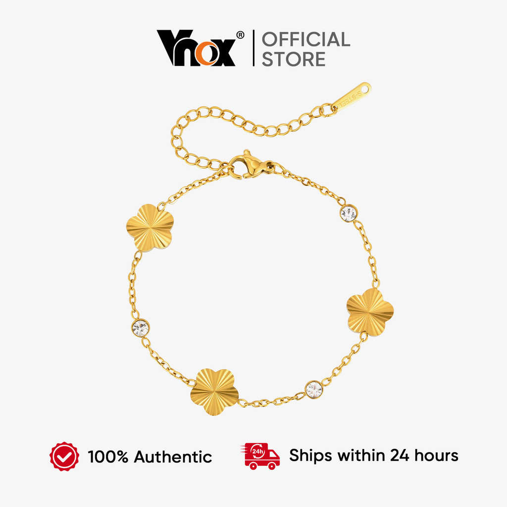 Vnox Gold Five-Leaf ดอกไม้Zircon Cubic Link Chainสร้อยข้อมือผู้หญิงหญิง,Non Tarnish & Hypoallergenicสร้อยข้อมือเครื่องปร