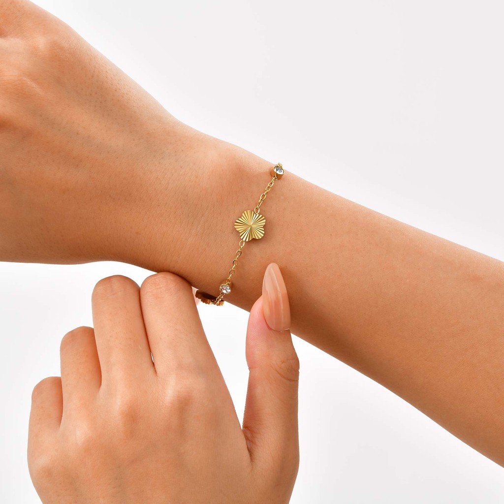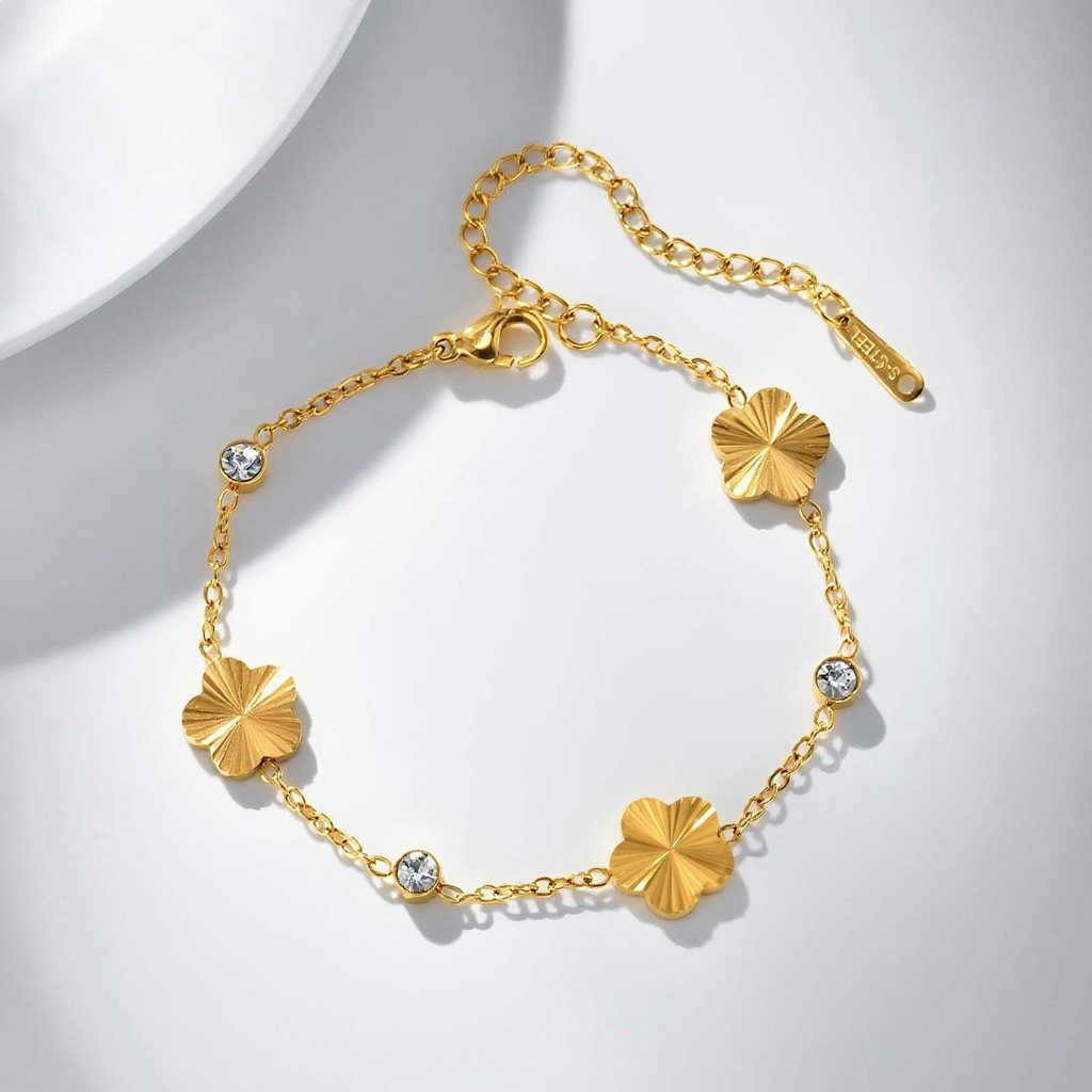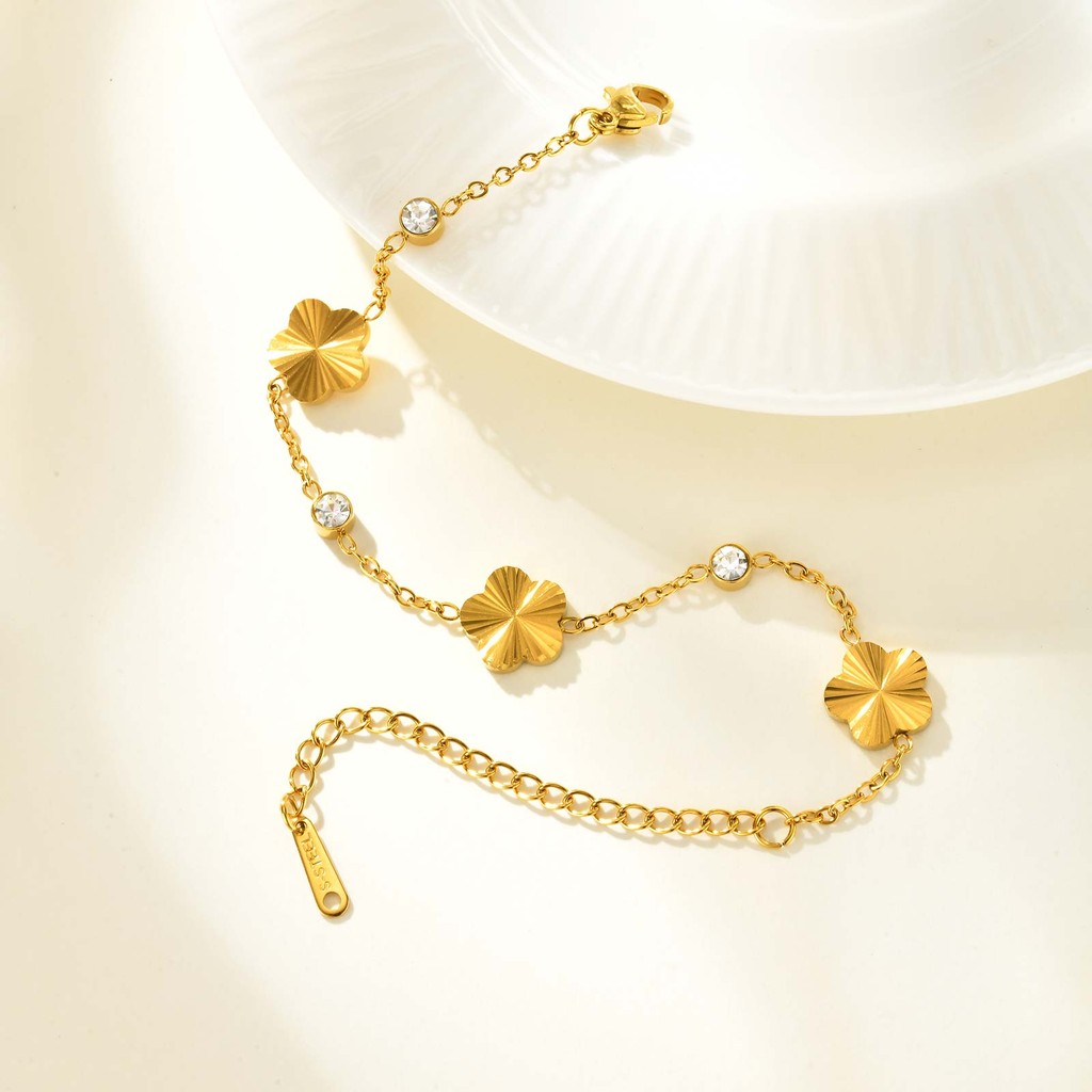 Vnox Gold Five-Leaf ดอกไม้Zircon Cubic Link Chainสร้อยข้อมือผู้หญิงหญิง,Non Tarnish & Hypoallergenicสร้อยข้อมือเครื่องปร