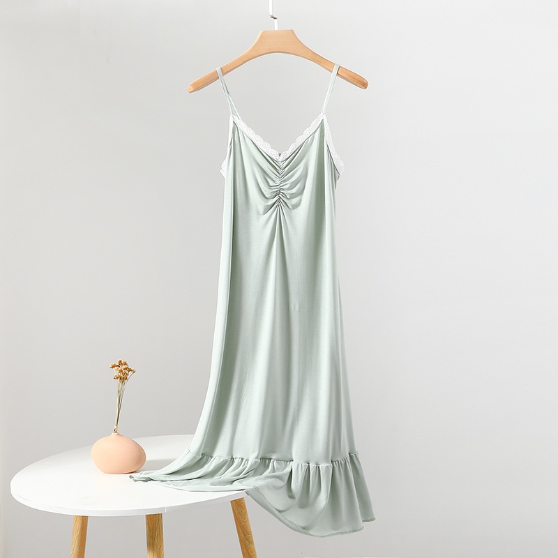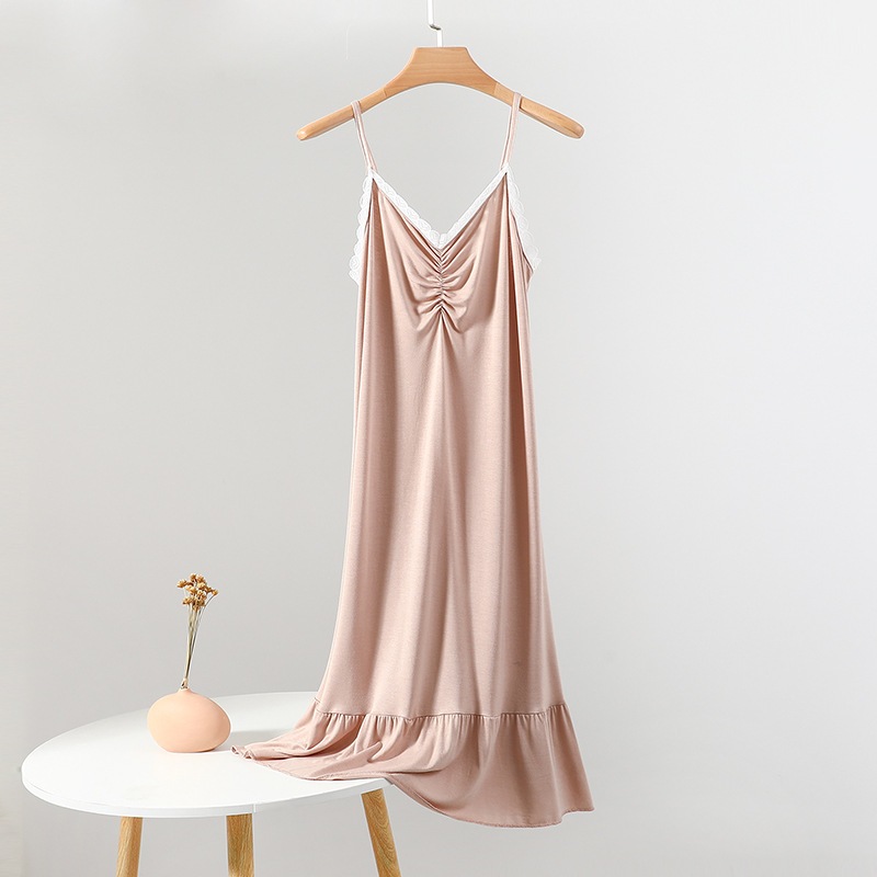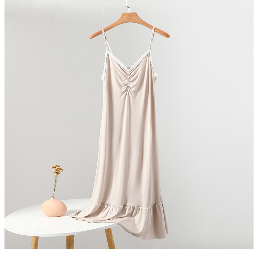 ● ชื่อ: Modal Sling Nightgownชุดเดรสน้ำหนักเบาสำหรับผู้หญิง, ชุดเดรสลูกไม้เซ็กซี่, ชุดเลานจ์