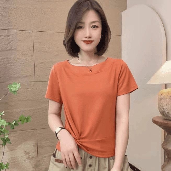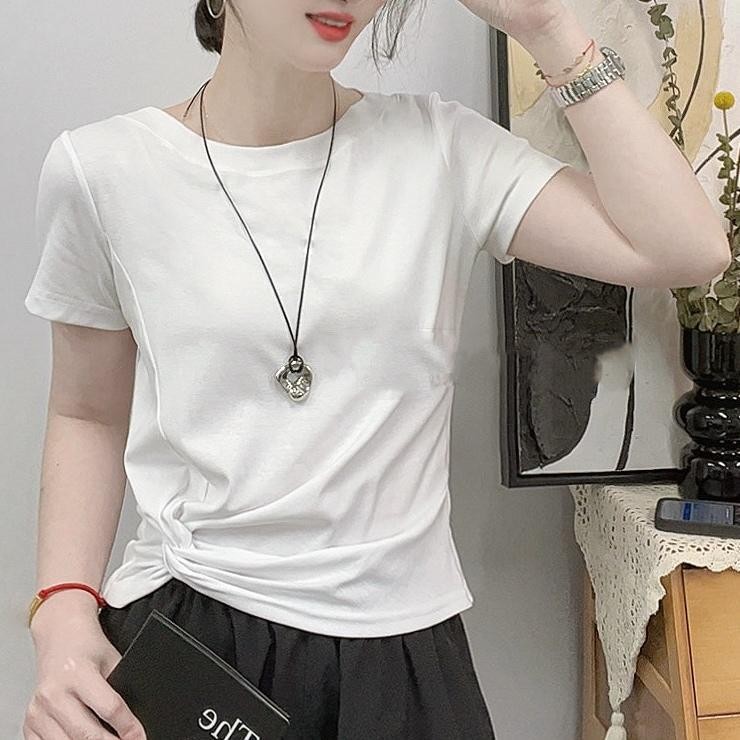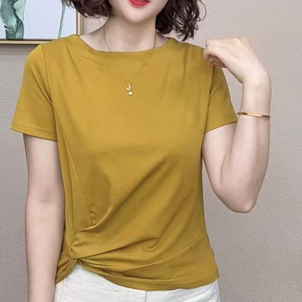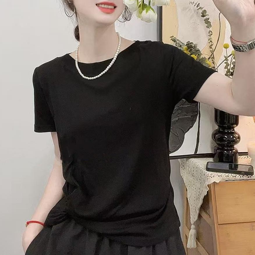 ฤดูร้อนของผู้หญิงใหม่แฟชั่นลําลองคอกลมสลิมมิ่งแขนสั้นด้านบนเสื้อยืด