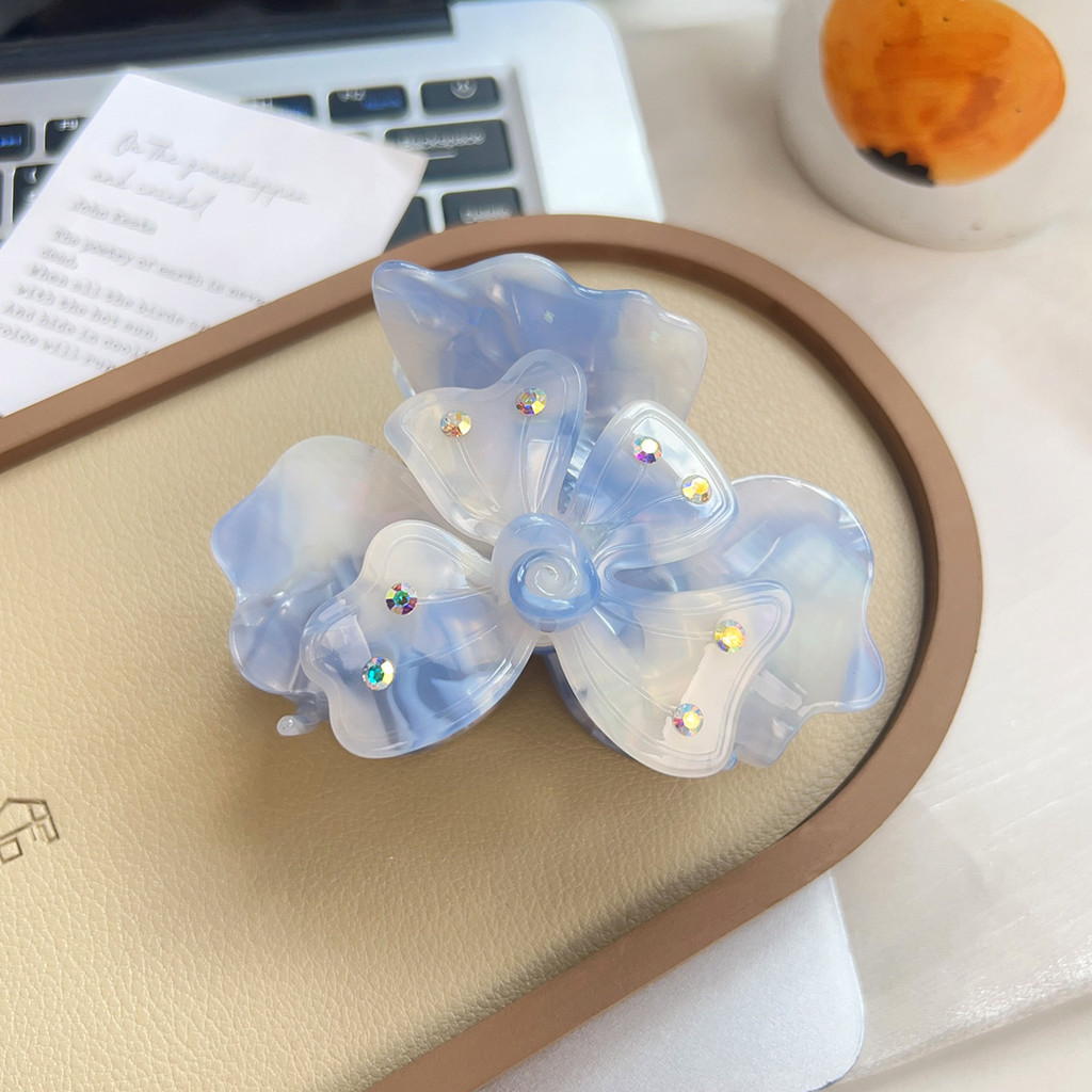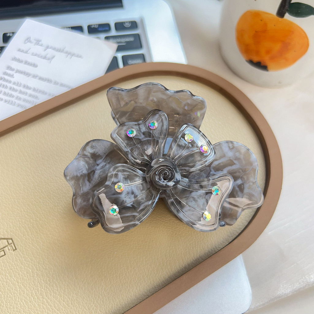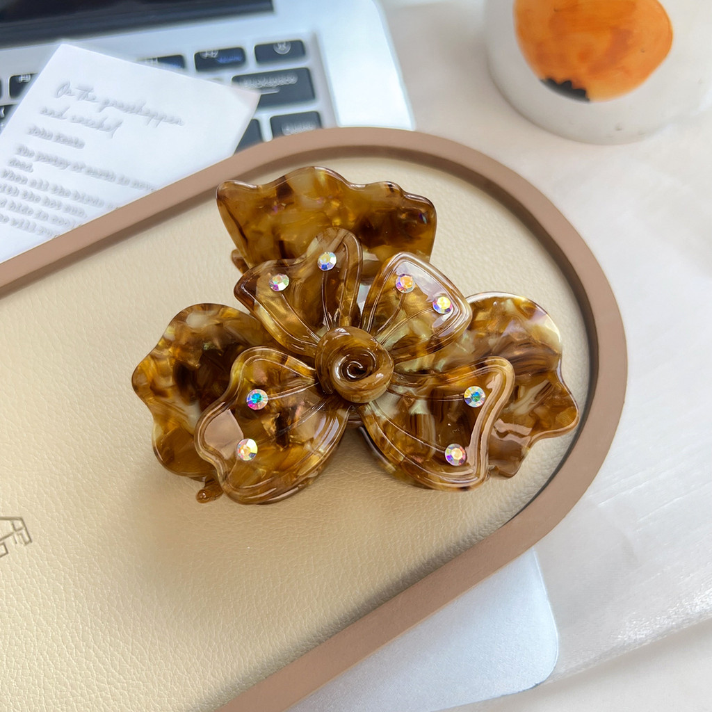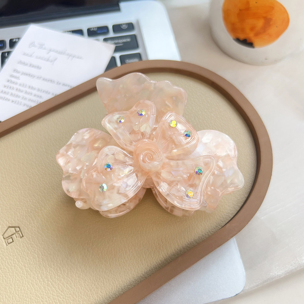คุณสมบัติ: ใหม่ความรู้สึกสูงของดอกไม้โคลเวอร์สี่ใบพร้อมเพชรคว้าคลิปหนีบผมจานกลางผมหางม้ากิ๊บคลิปฉลาม