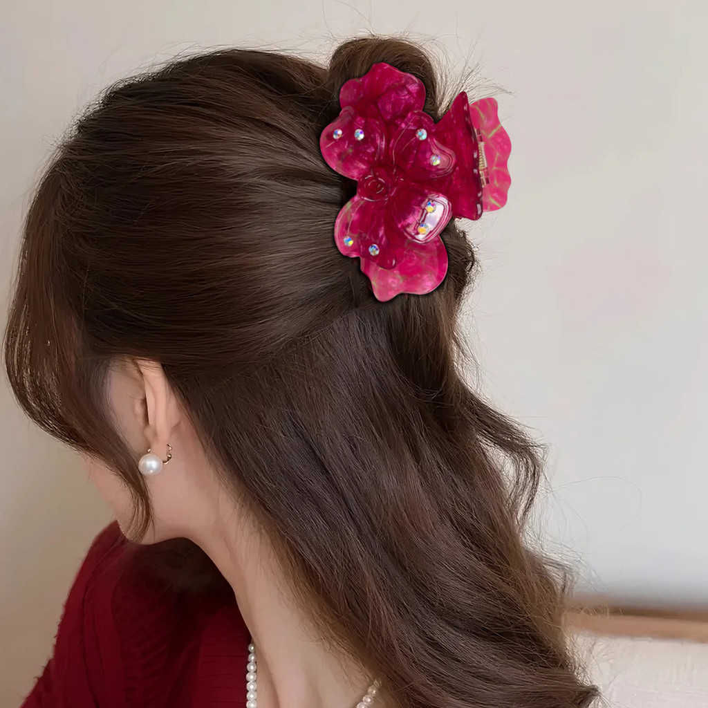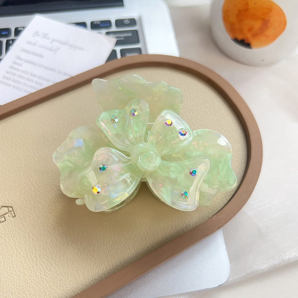 กิ๊บทอดผมผู้หญิงแบบดอกไม้โคลเวอร์สี่ใบ มาพร้อมคริสตัลระยิบระยับ
