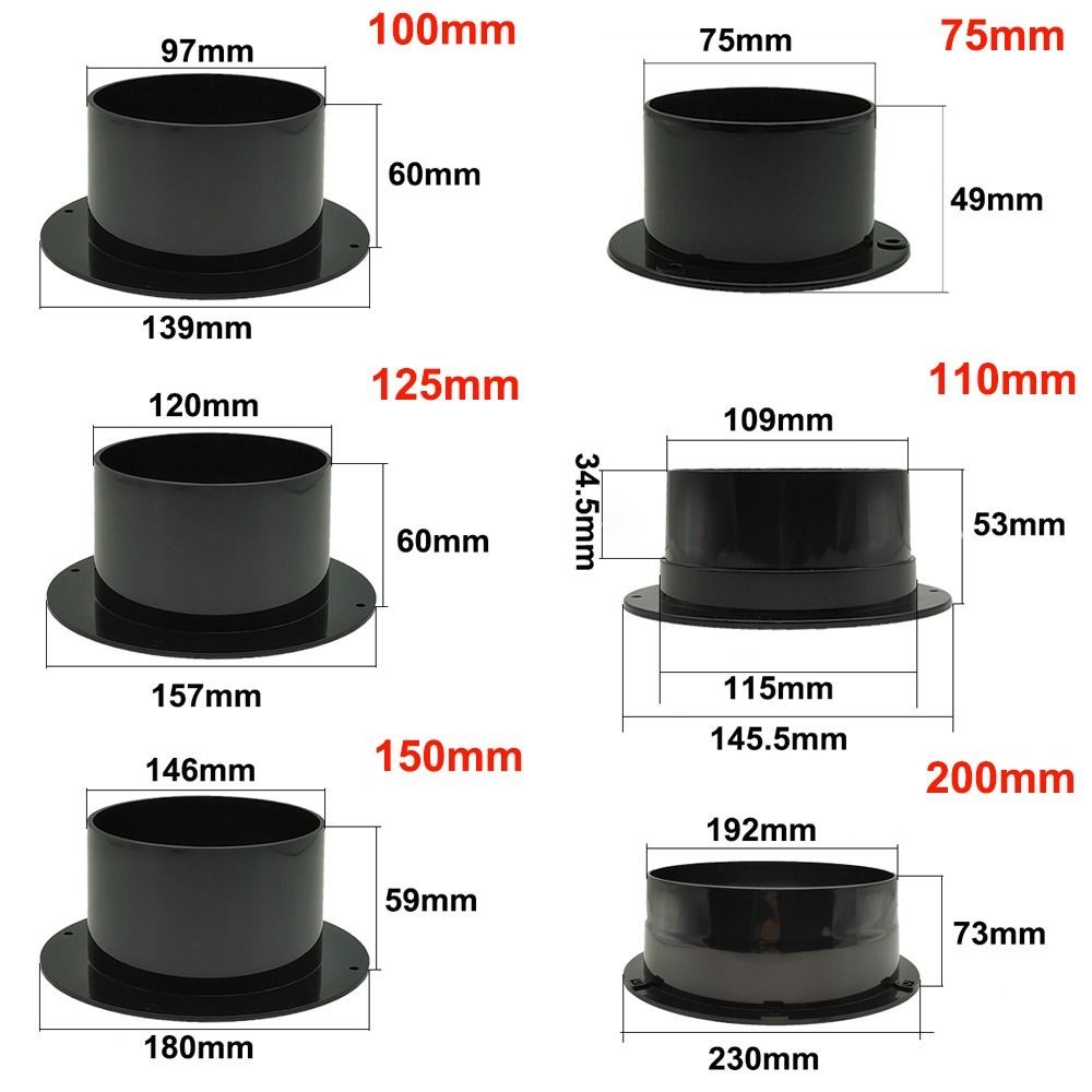 ขั้วต่อหน้าแปลนผนัง ยูก้า ข้อต่อท่อระบายอากาศทรงกลมสีดําอุปกรณ์เสริมในครัวเรือน ข้อต่อท่ออากาศพลาสติก ท่อระบายอากาศ
