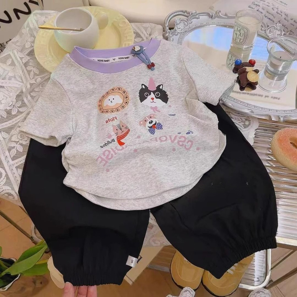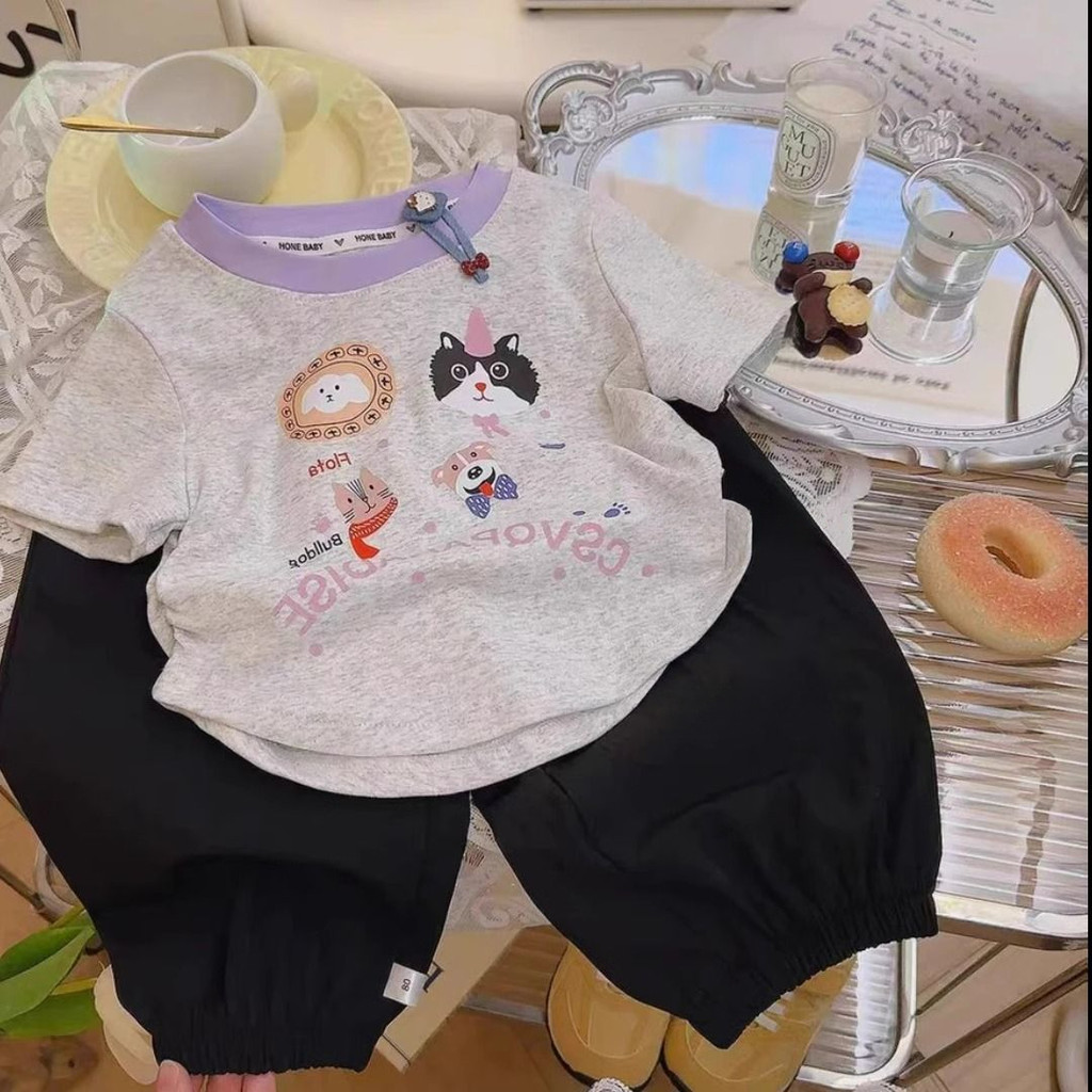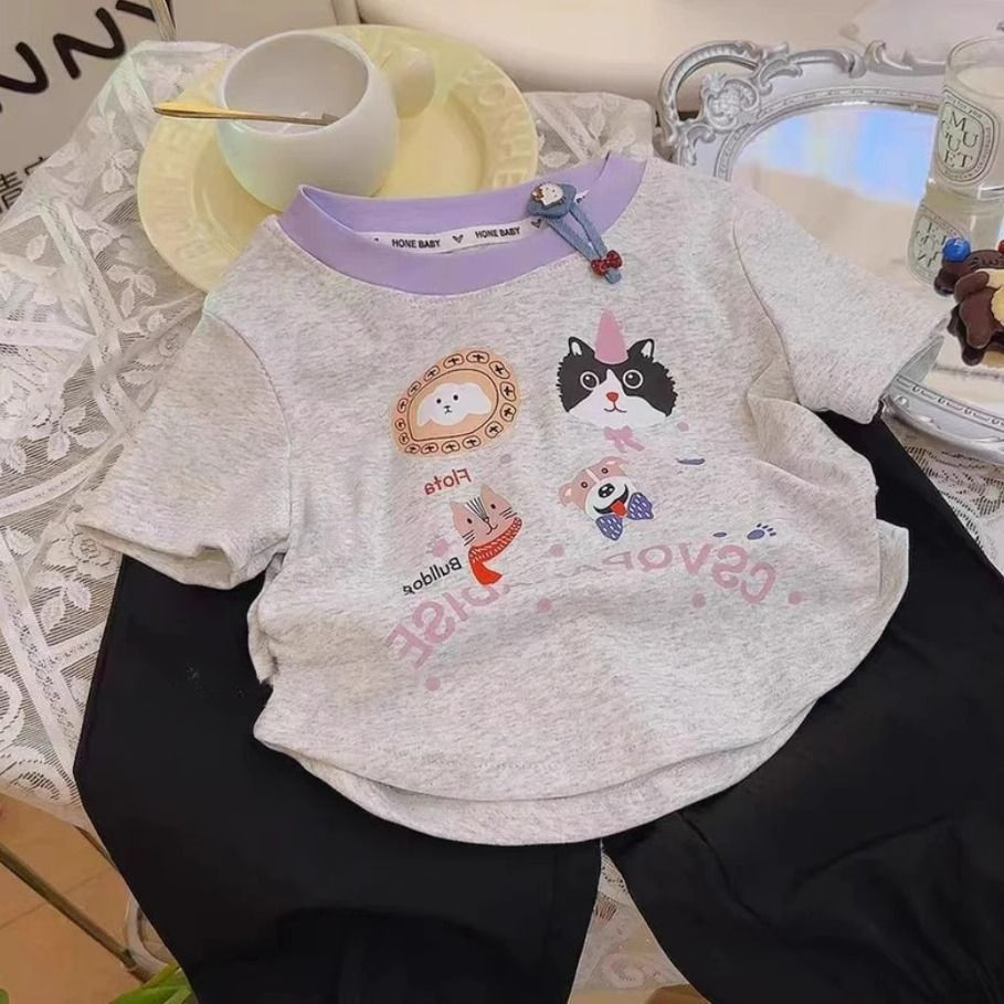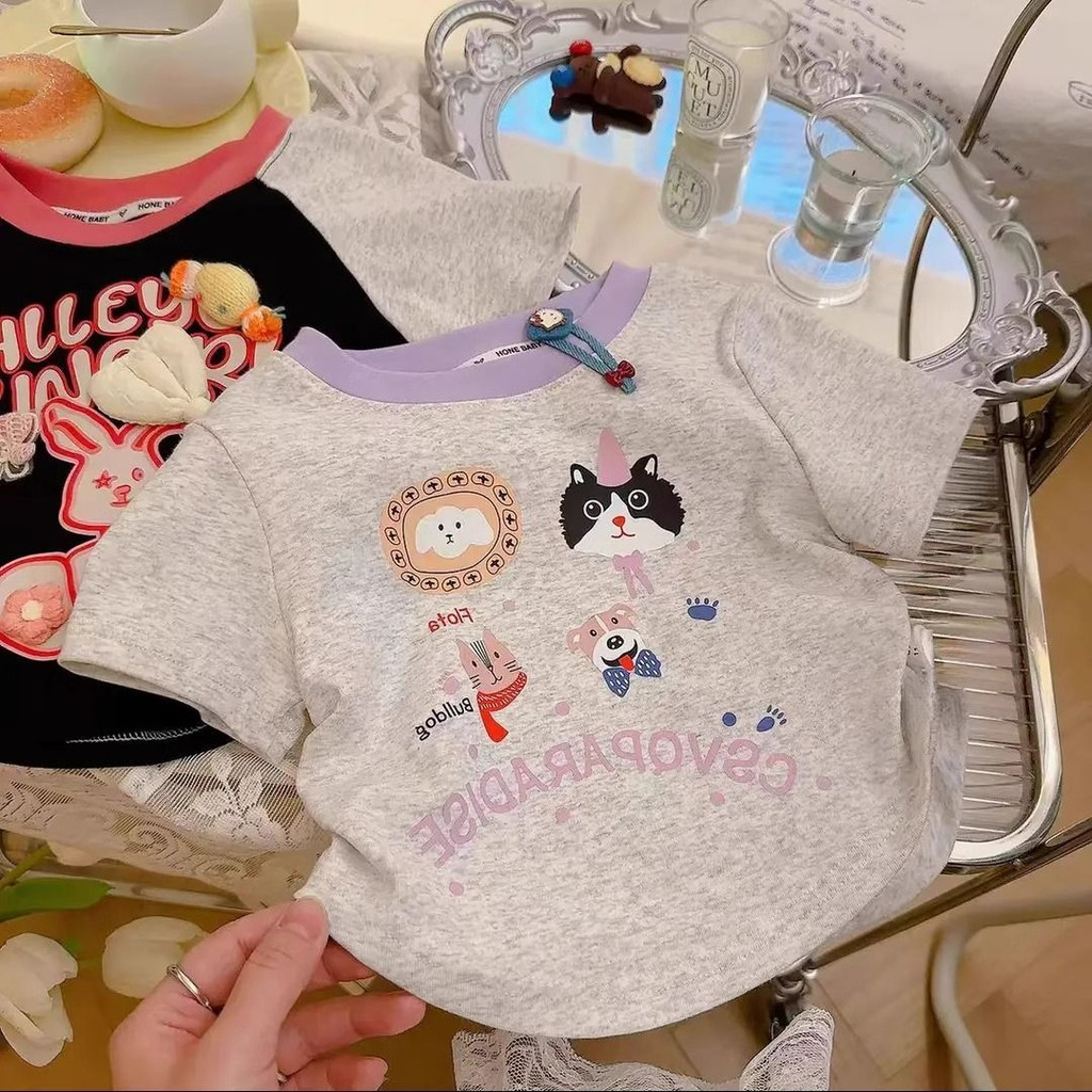 เสื้อยืดแขนสั้นสไตล์เกาหลี พร้อมลายการ์ตูนเหมือนสาวฤดูร้อน