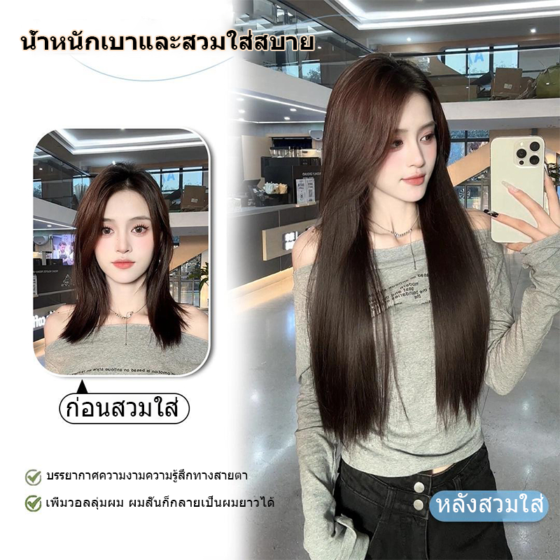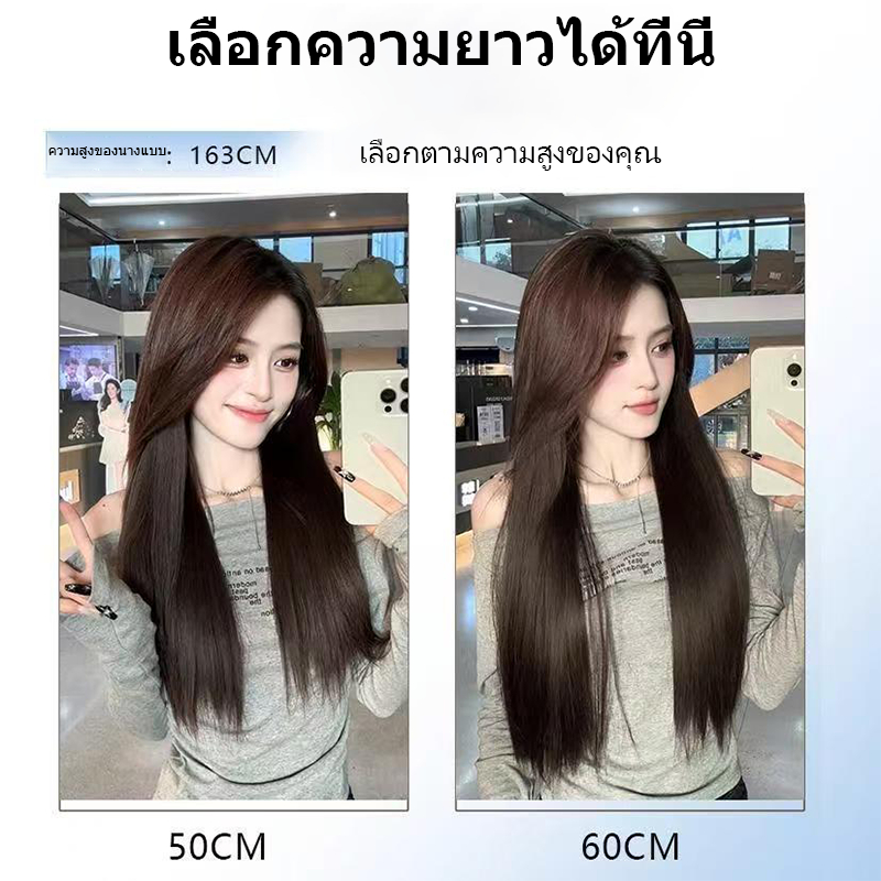 【จัดส่งจากกรุงเทพฯ】วิกผมยาว ผมตรง 50/60 ซม. ความหนา 160 กรัม ม้วน/ยืดได้ ไหมนุ่ม วิกผมยาวทนความร้อน
