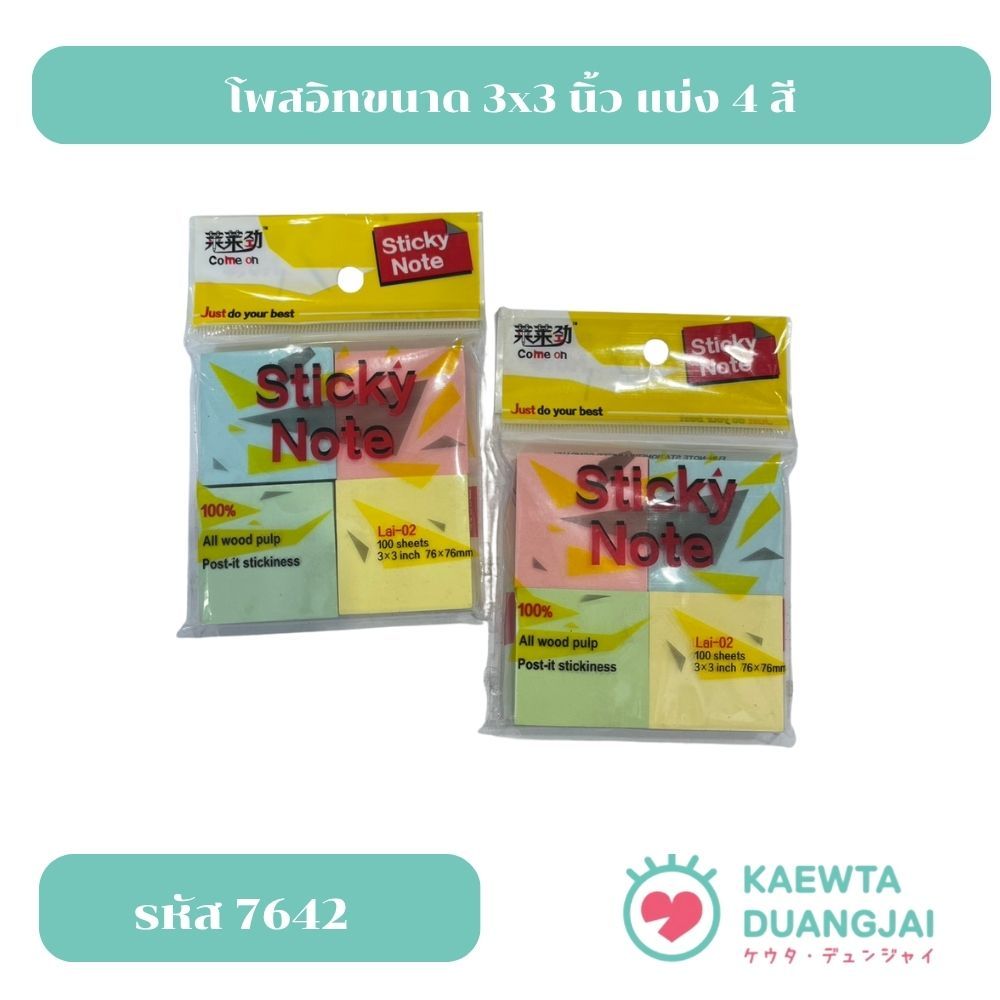 โพสอิทขนาด 3×3 นิ้ว แบ่ง 4 สี #7642
