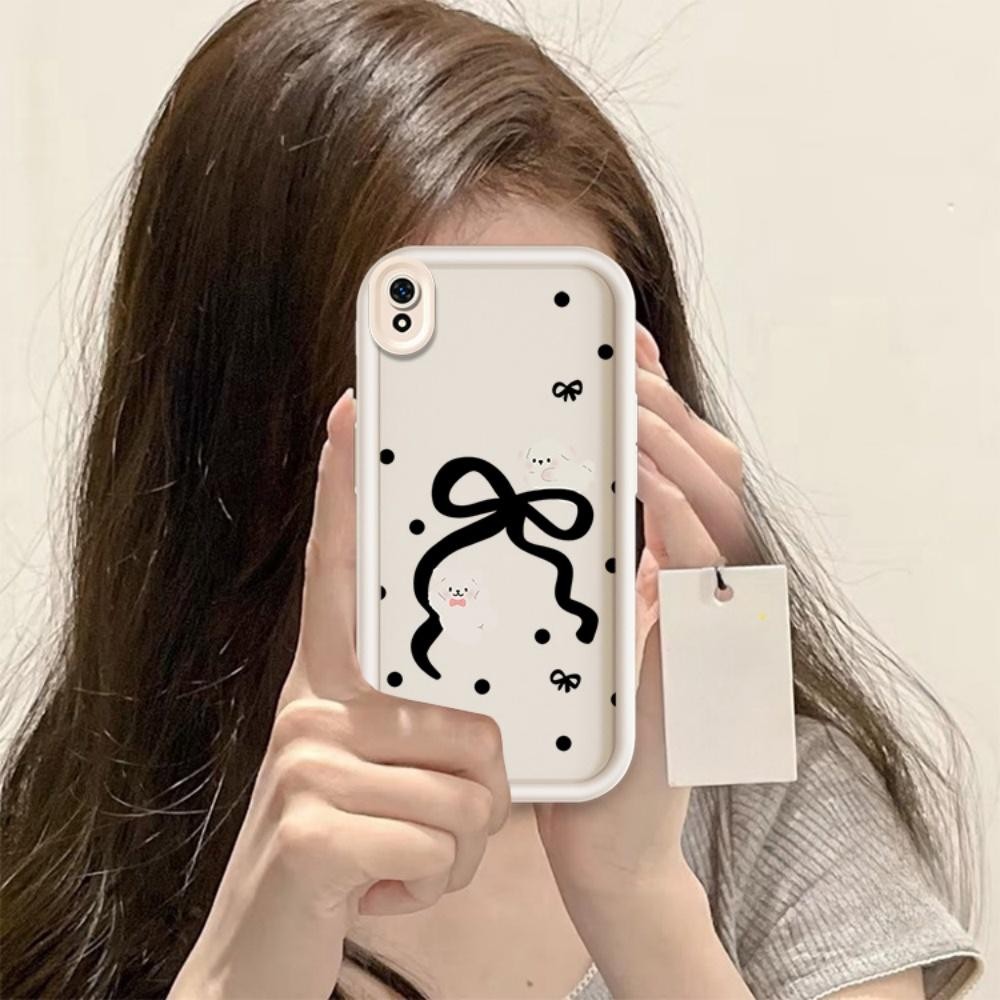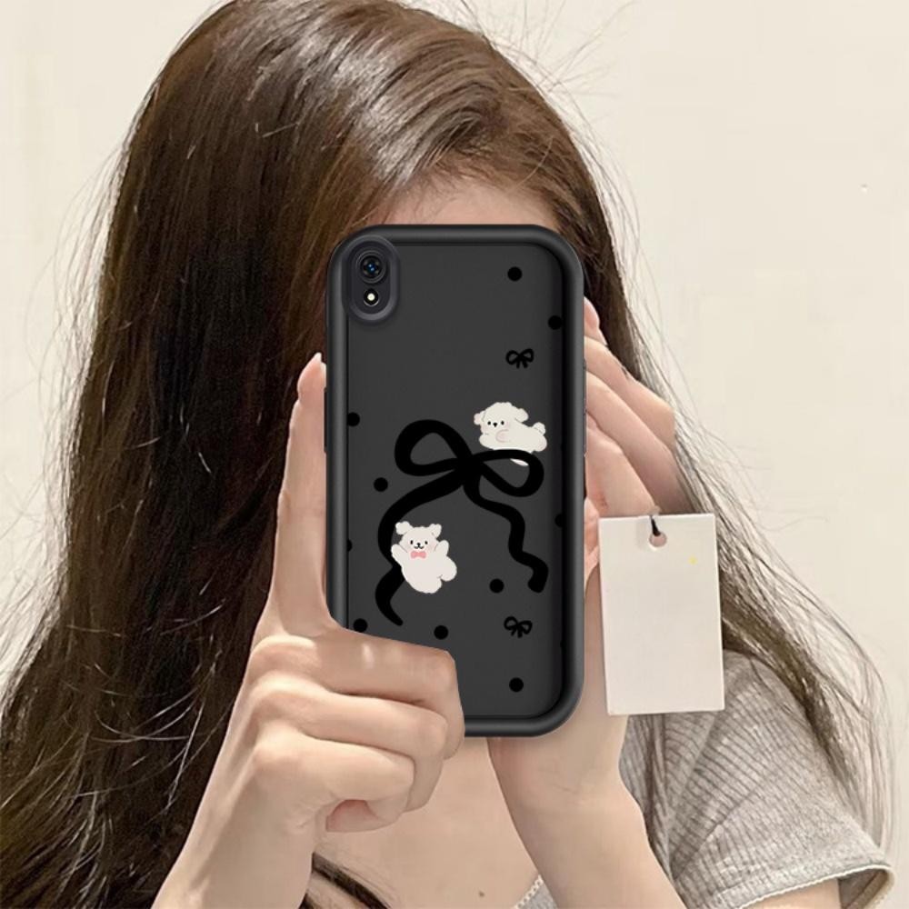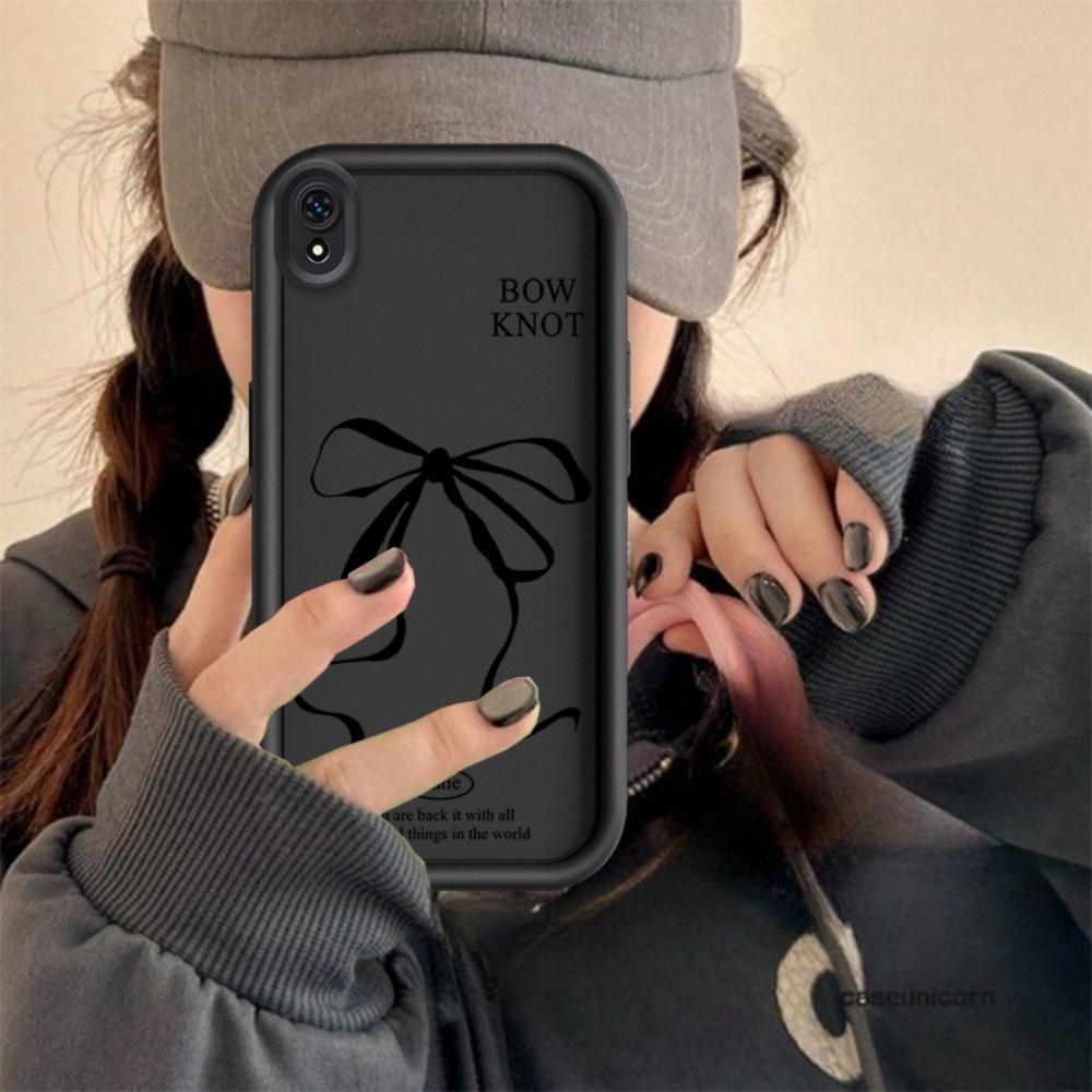 ปลอกสําหรับใช้งานร่วมกับ Redmi 8 8A 9A 9i สีดําโบว์ซิลิโคนฝาครอบกรณี TPU กันกระแทก