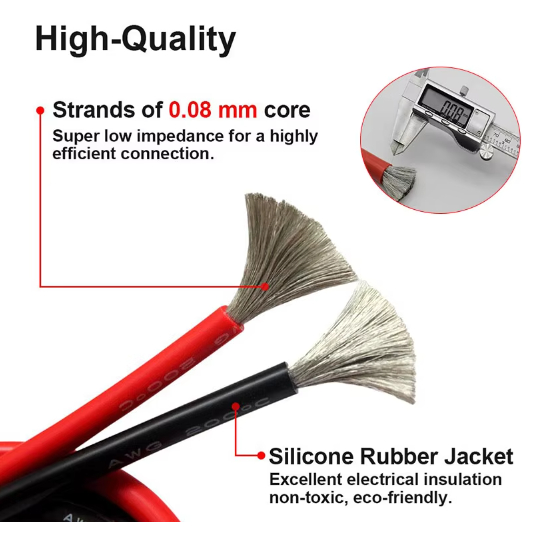 สายซิลิโคนอ่อนนุ่มพิเศษ ทนความร้อนสูง 4AWG ทองแดงแท้เคลือบดีบุ