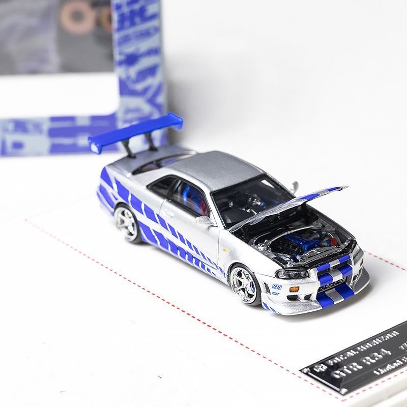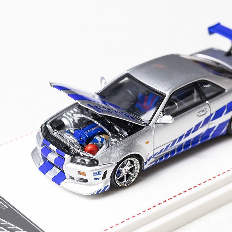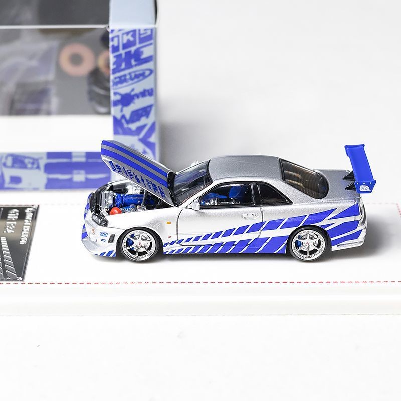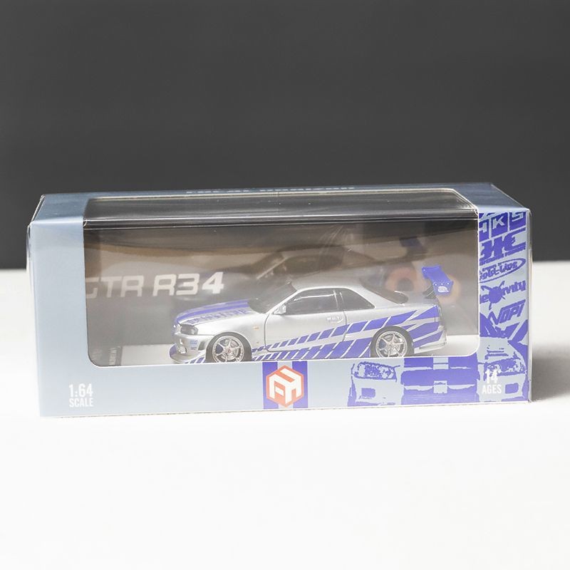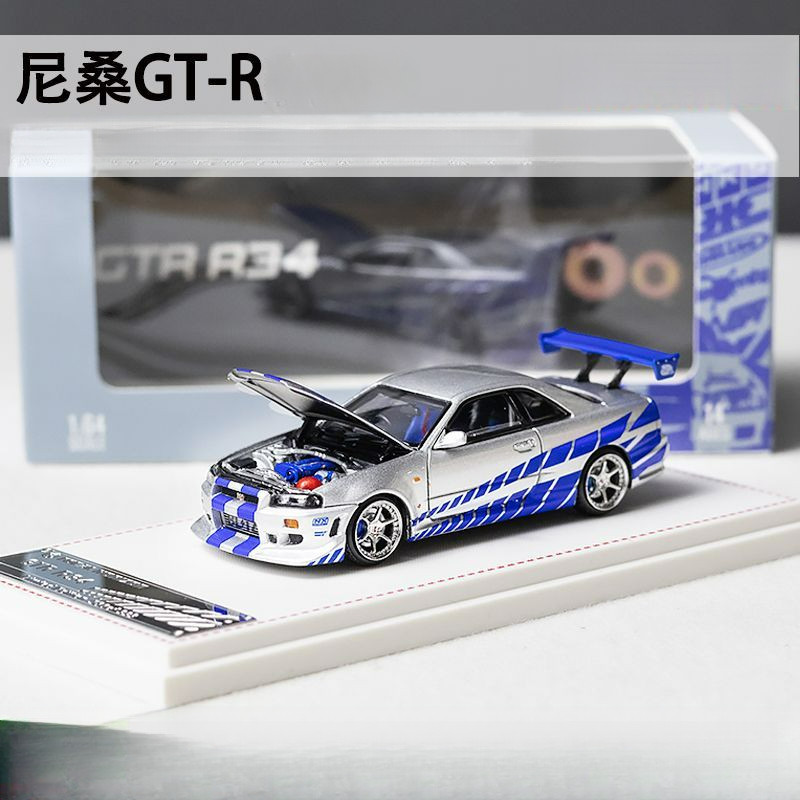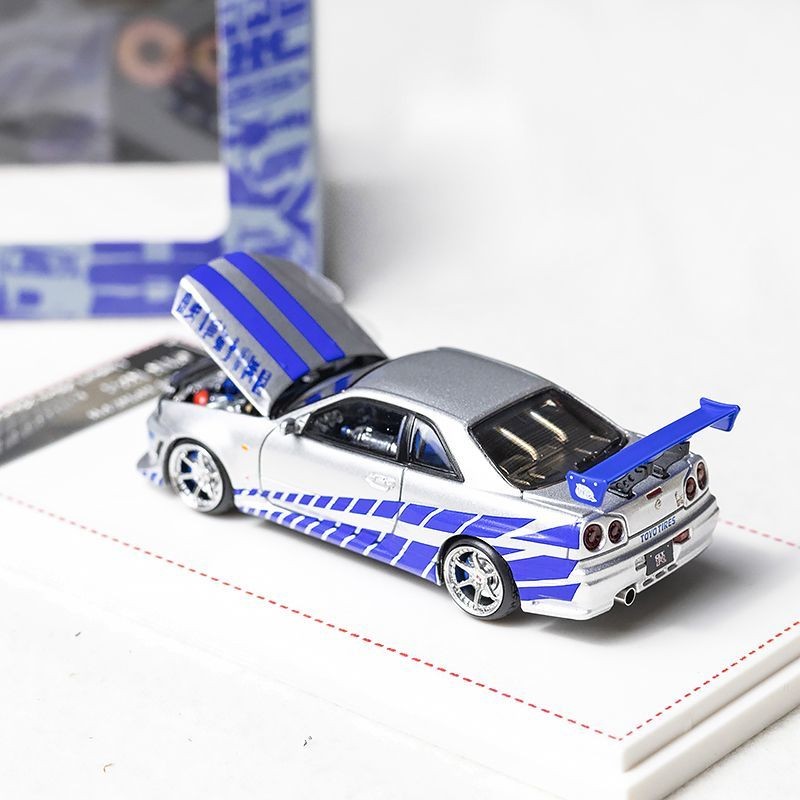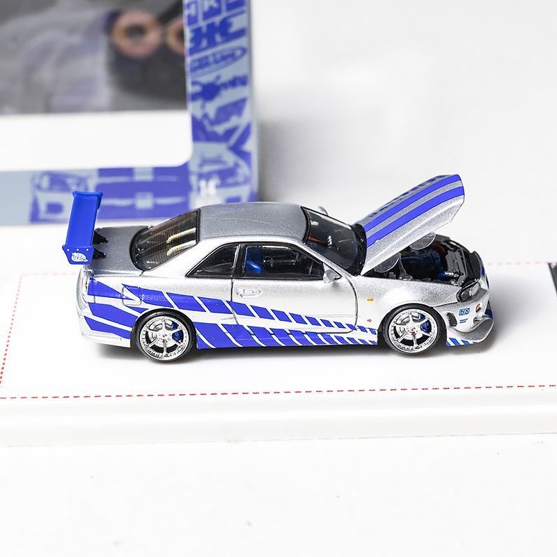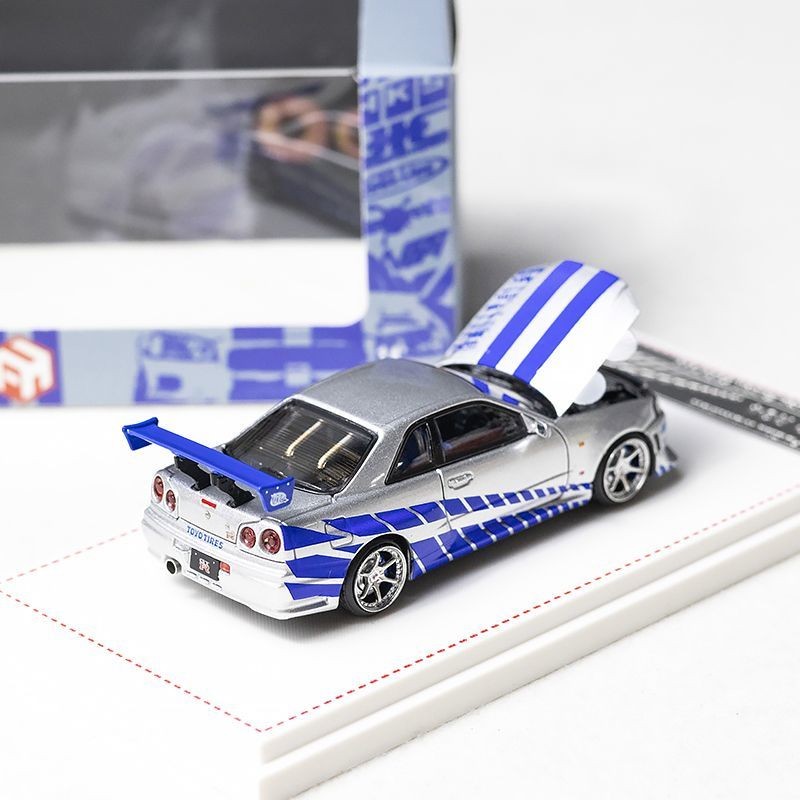 FH 1/64 Nissan Skyline GTR R34 เงินสีฟ้า FNF รถรุ่น Diecast รถของเล่นคอลเลกชันของขวัญวันเกิด