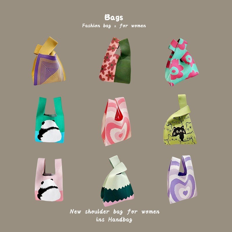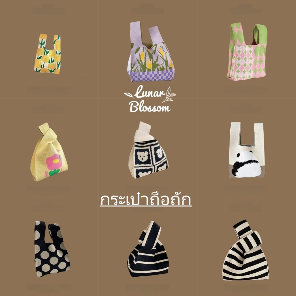 Lunar Blossom ?? tote กระเป๋าถือผ้าไหมพรมลายต่างๆ ผ้าถัก ลายสก๊อต แฮนด์เมด ใช้ซ้ําไดฺ้ มีสไตล์และพกพาสะดวก