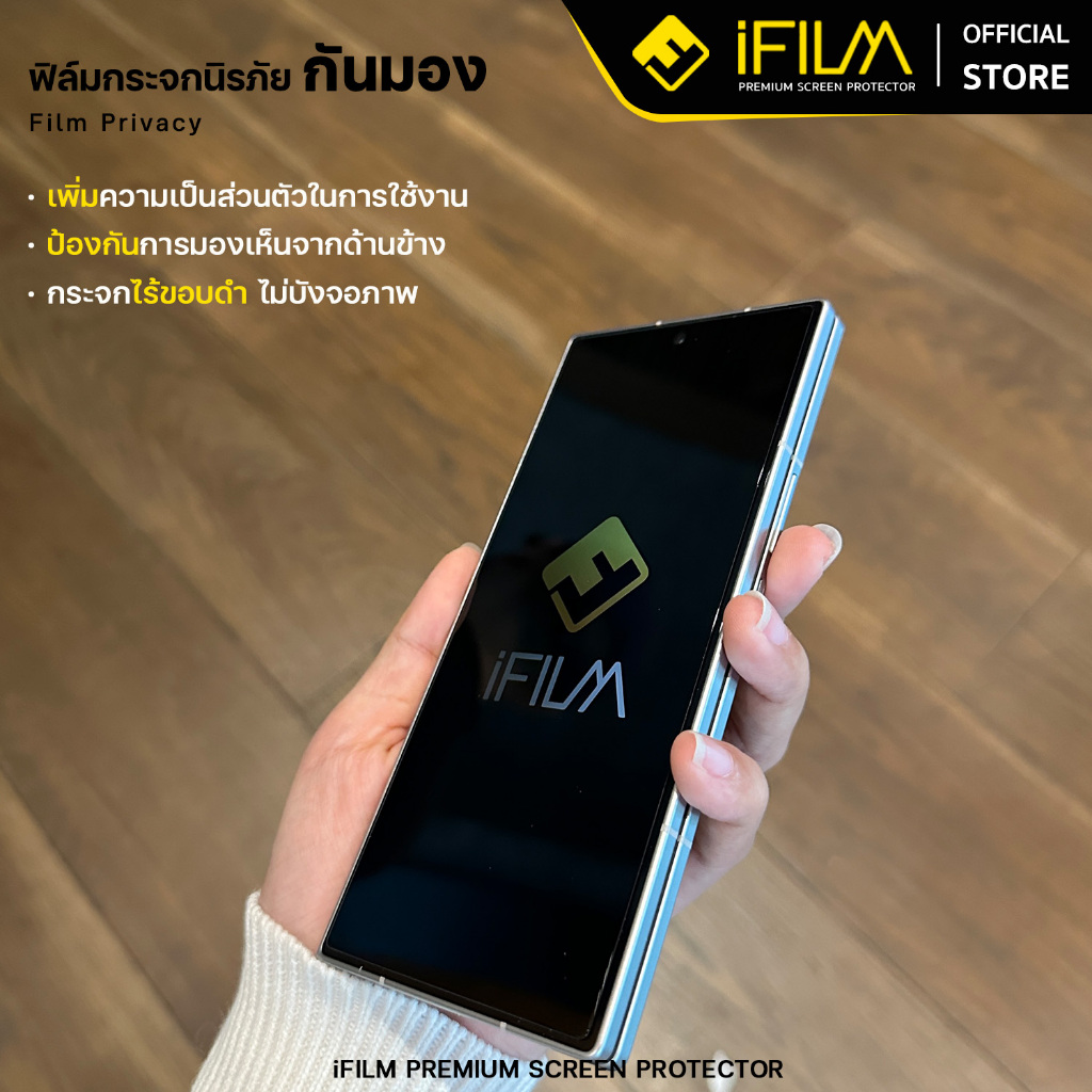 ?iFilm ฟิล์มกันมอง ไร้ขอบดำ HD จอนอก For Samsung ZFold7 / Fold6 / Fold5 / ZFlip7 / Flip6 ฟิล์มกระจก กันกันเสือก Privacy