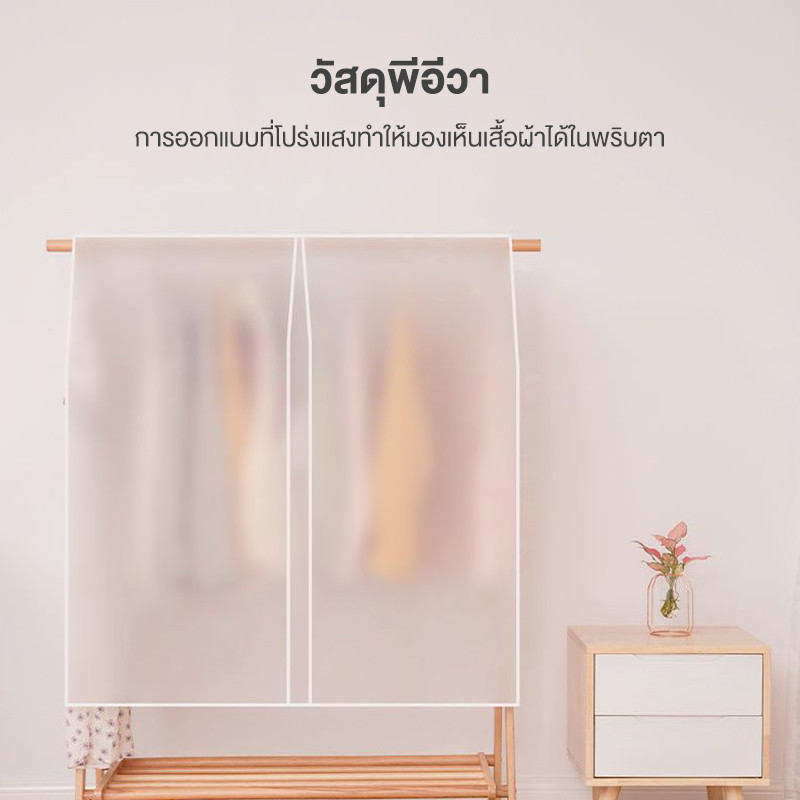 ถุงคลุมเสื้อผ้า ฝาครอบกันฝุ่นสำหรับเสื้อผ้า คุณภาพสูง แบบใส ป้องกันฝุ่นและความชื้น PEVA ทำความสะอาดง่าย