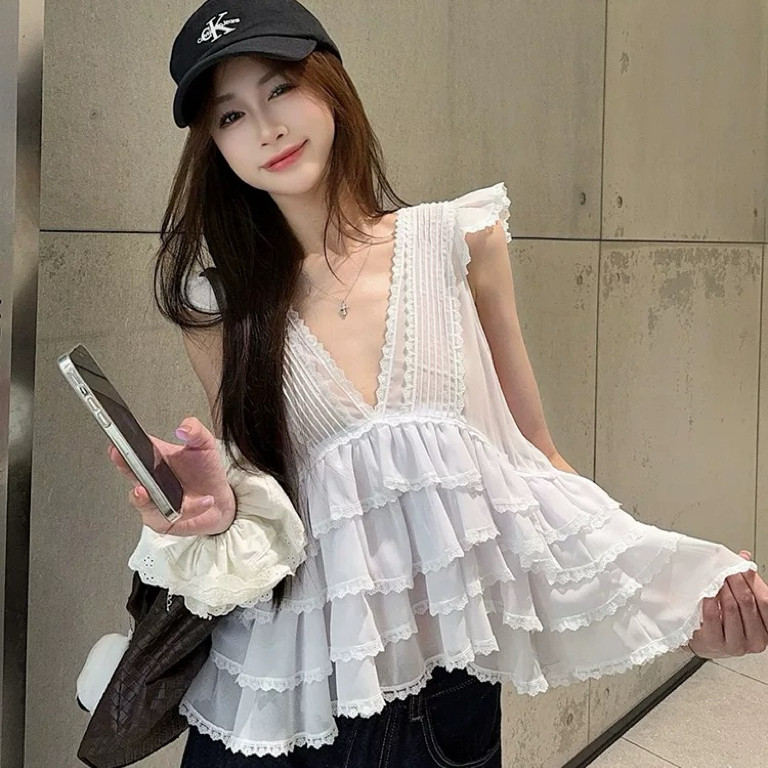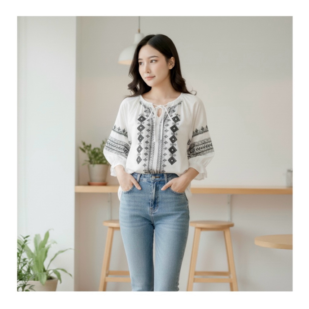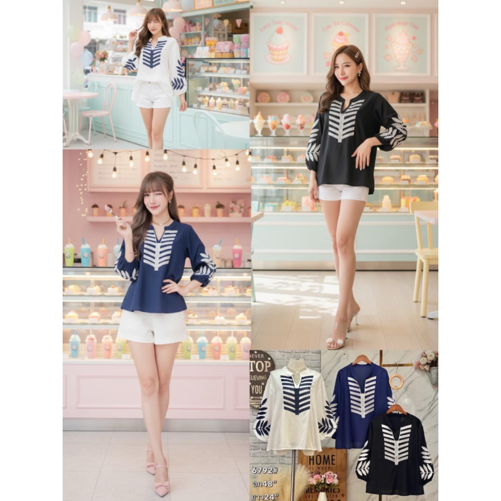 ??เสื้อคอจีนระบายลายน่ารักๆ มีริบบิ้นผูกโบว์คอสามารถถอดออกได้ กระดุมหน้าและปลายแขน ผ้าเนื้อดีใส่สบาย ใส่แมทช์กับอะไรก็ดูดี จะใส่ไปทำงานหรือใส่ไปเที่ยว