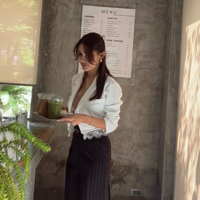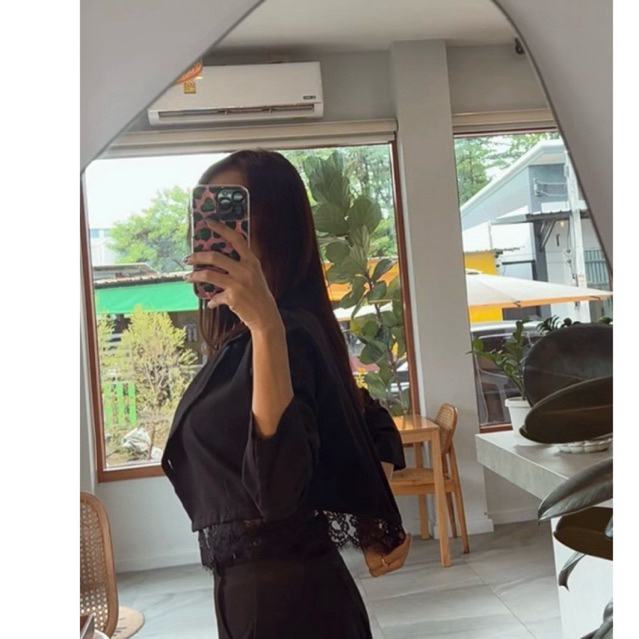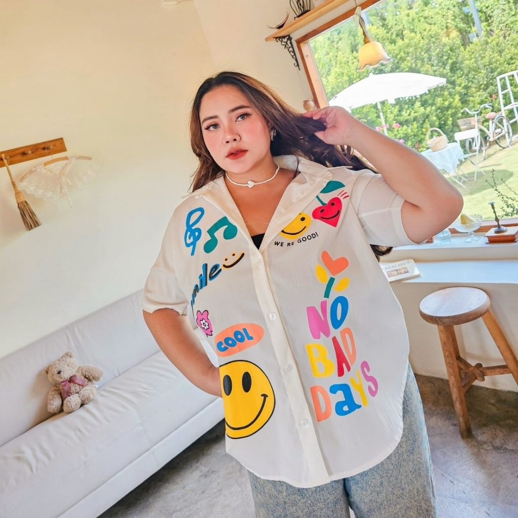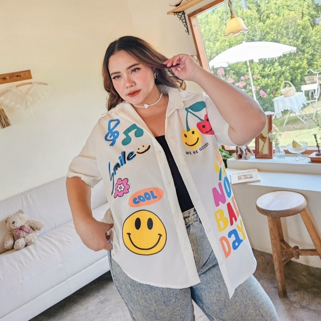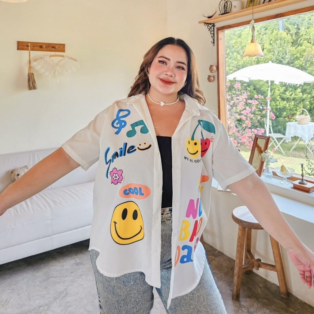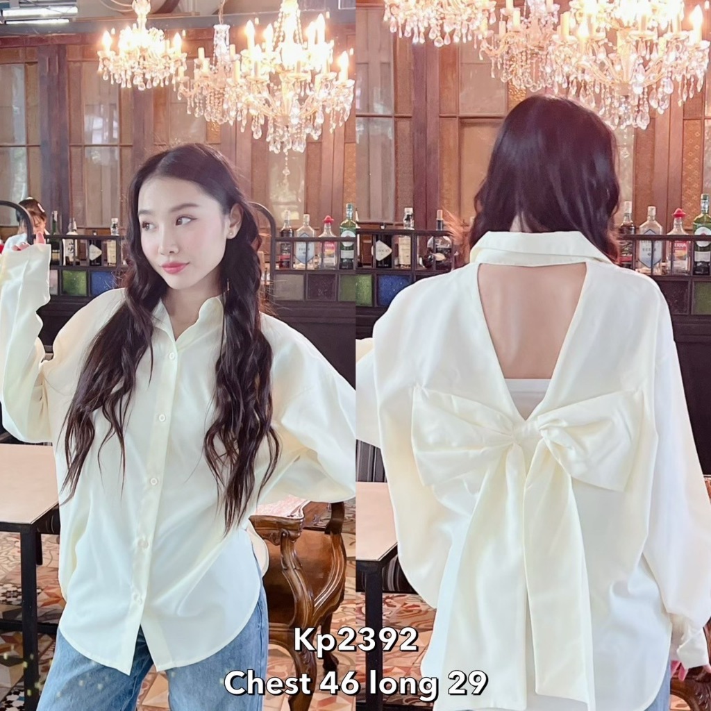 เสื้อเชิ้ตแขนยาวทรง over size ดีเทลโบว์เว้าหลัง สวยไม่ซ้ำใครแน่นอน