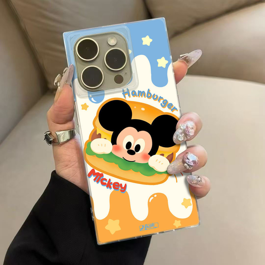 [Cube] Burger Mickey Ice Crystal Cube เหมาะสําหรับ Apple 16ProMax/15/14 เคสโทรศัพท์ iPhone13/12 แบบเรียบง่าย