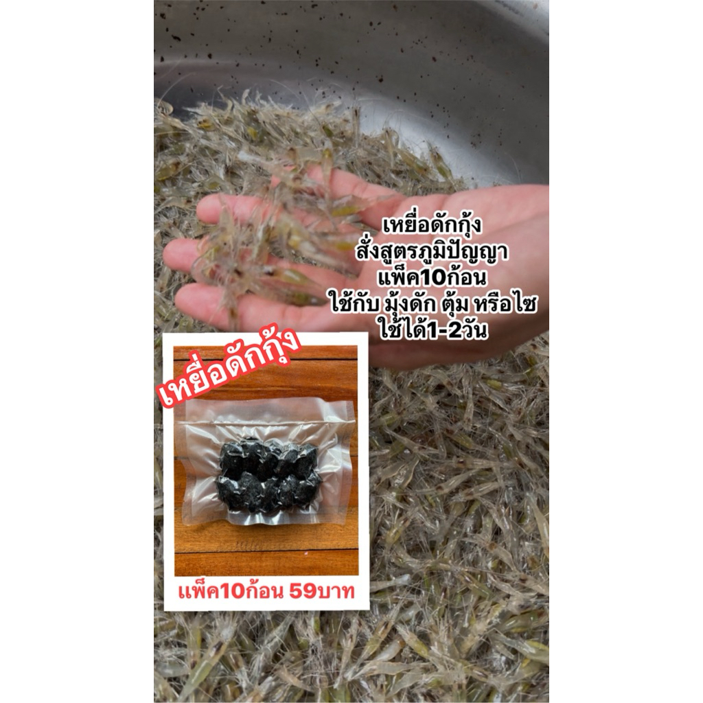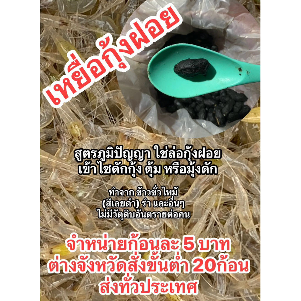 เหยื่อดักกุ้งฝอย สูตรภูมิปัญญา ทำเอง จำหน่ายเอง ใช้มามากกว่า20ปี สำหรับใช้เป็นเหยื่อล่อกุ้งฝอยเข้าไซ,มุ้ง,ตุ้ม รับประกันและะยืนยันจากลูกค้าว่าประสิทธิภาพดี กุ้งฝอยเข้าแน่นอน ใช้ได้1-2วันต่อก้อน/ เเพ็คจำนวน10ก้อน