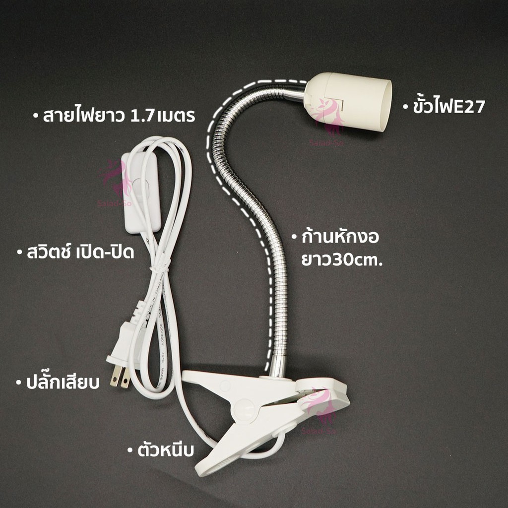ขาหนีบหลอดไฟ ขั้วE27 ขั้วหลอดไฟ สายไฟมาตรฐาน มอก ขั้วไฟตั้งโต๊ะ ยาว30ซม E27-M530S