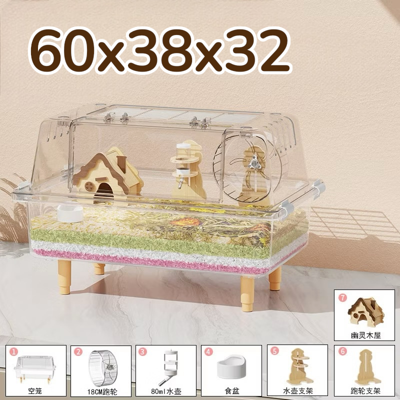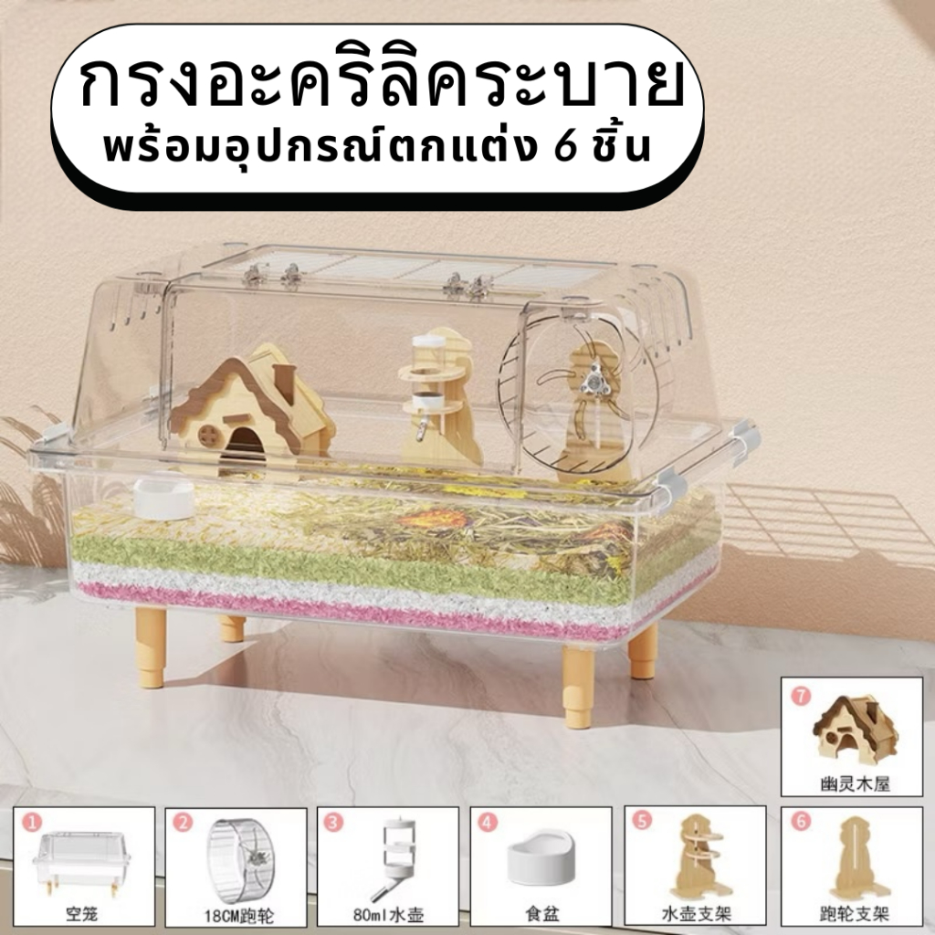 กรงอะคริลิครุ่นระบายอากาศ H006 อุปกรณ์ครบชุด กรงแฮมเตอร์ กรงหนู ขนาดใหญ่ 60x38x32 CM