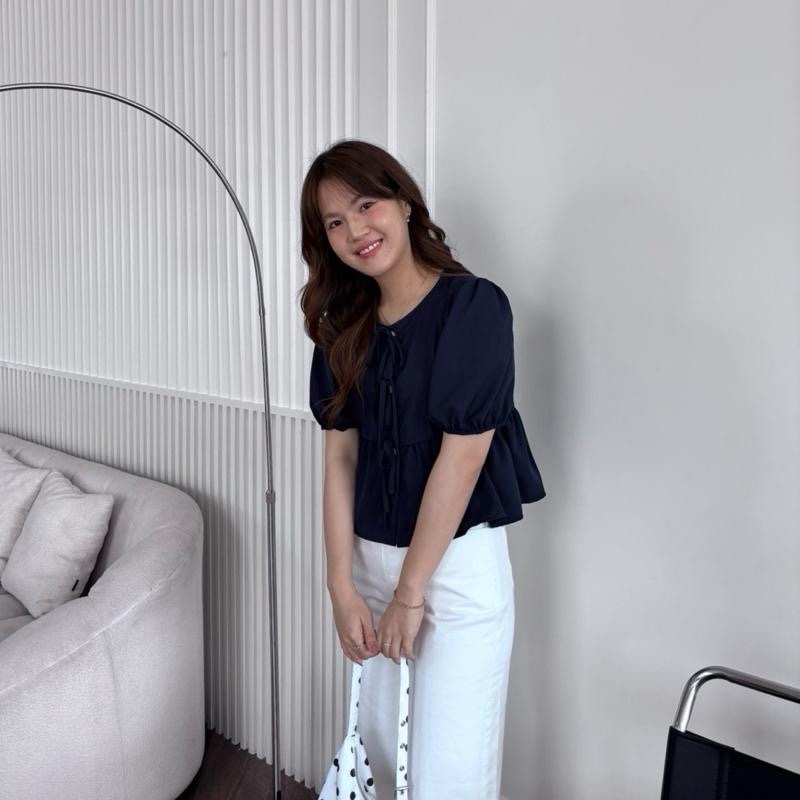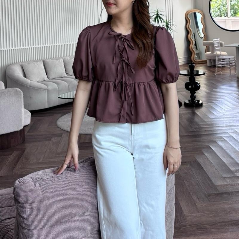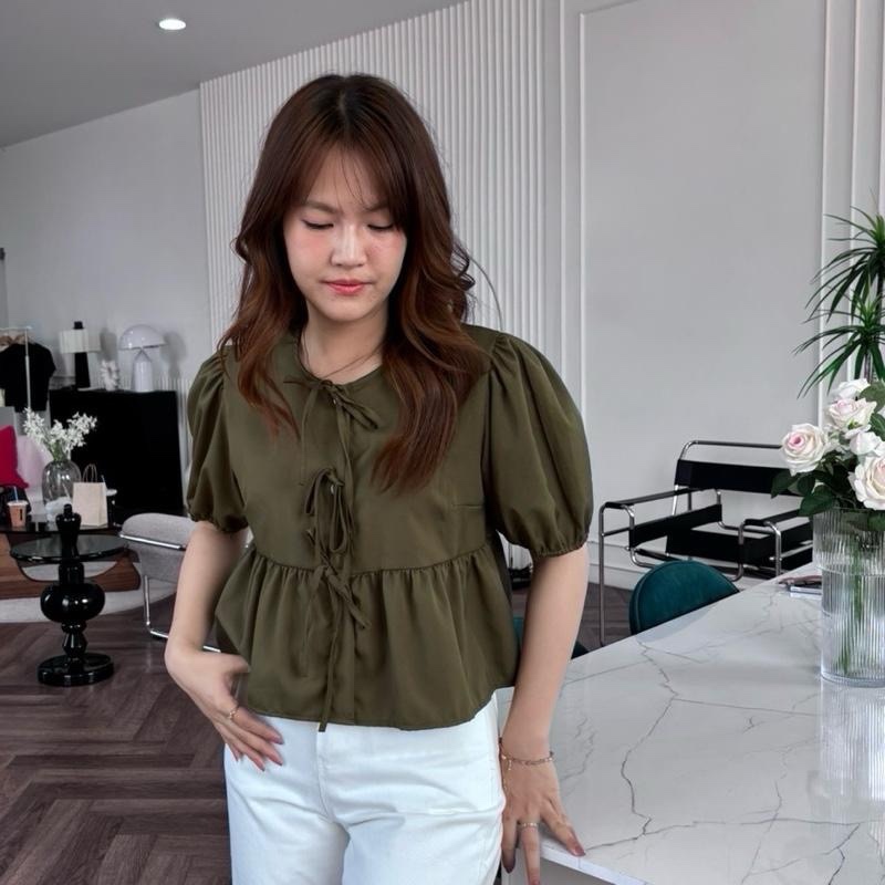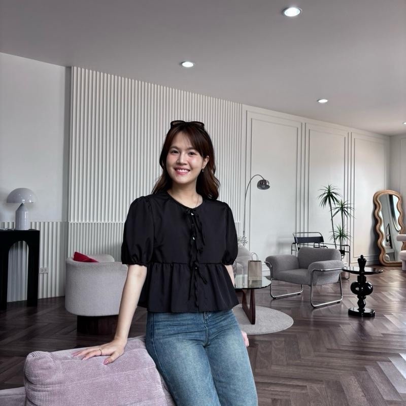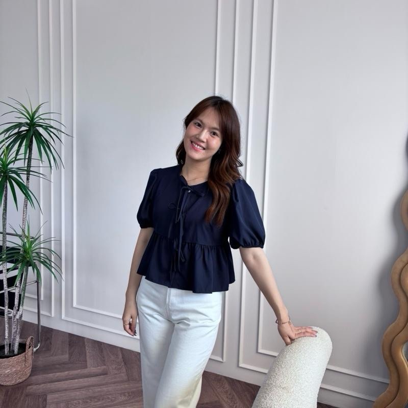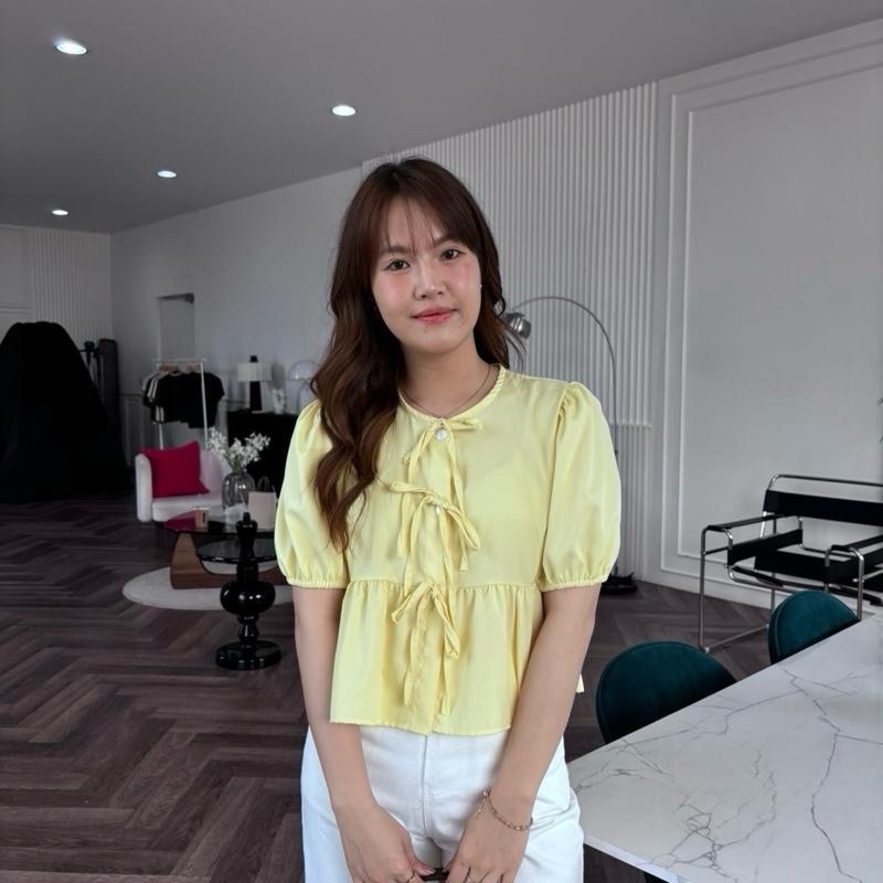 Basic Club Ribbon Blouse เสื้อเชิ้ตแต่งโบว์หน้า (กระดุมซ่อนหลังโบว์)