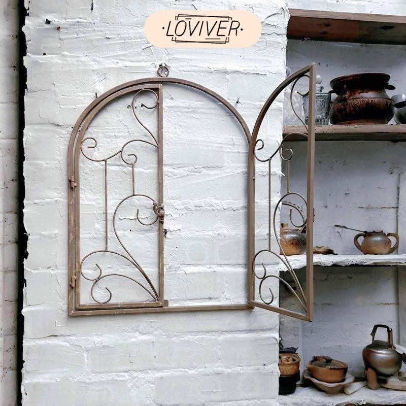 LOVIVER Arched Window Frame Decor โลหะ Scroll Wall Decor สําหรับตกแต่งสวนประตูด้านหน้า