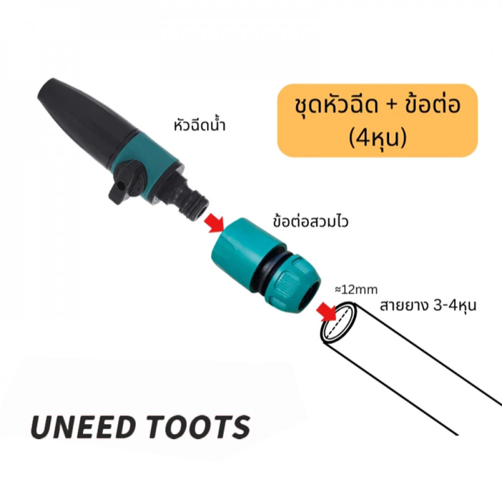 T0058 ?จัดส่งที่รวดเร็ว?หัวฉีด + วาล์ว หัวสวมสายยางพร้อมฉีด อุปกรณ์รดน้ำต้นไม้ ปรับองศาสายน้ำได้ ข้อต่อสวมไว สายยาง4หุน