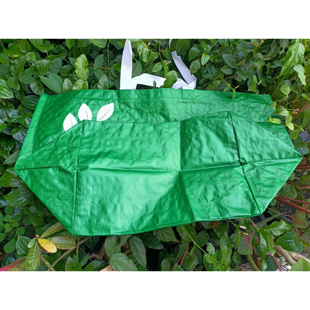 กระเป๋าใบใหญ่สีเขียว ลายเหมือนกันทั้งหน้าและหลัง