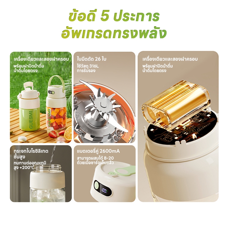 ONR-เครื่องปั่นน้ำผลไม้แบบพกพา ความจุใหญ่ 1000ml – อัปเกรดใหม่! มีใบมีด 26 แฉกพลังสูง ปั่นน้ำแข็งได้