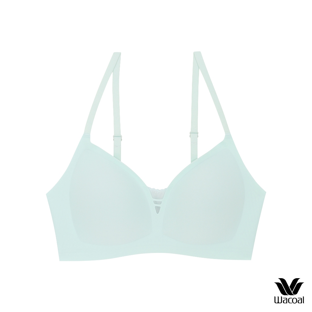 Wacoal ชุดชั้นเนียน บราไร้โครง Smart Size ผ้าร่องแต่งลูกไม้ รุ่น WB3Y38 สีเขียว (ME)