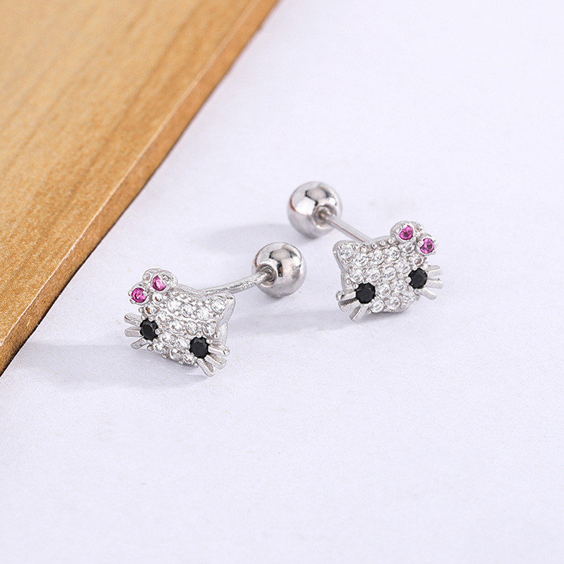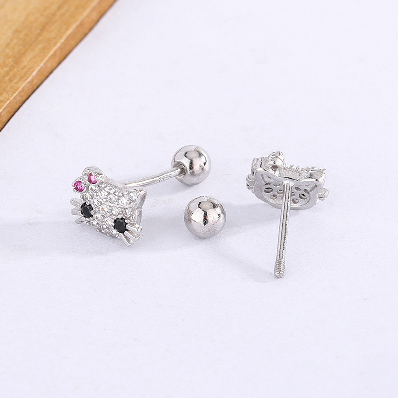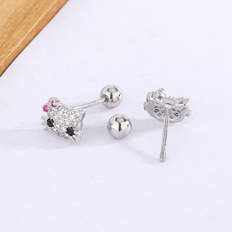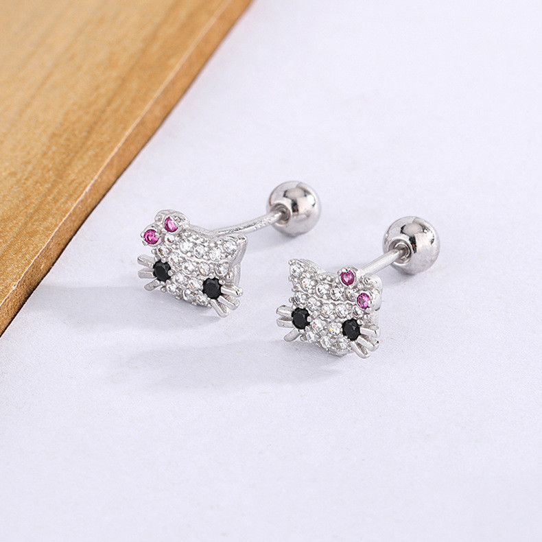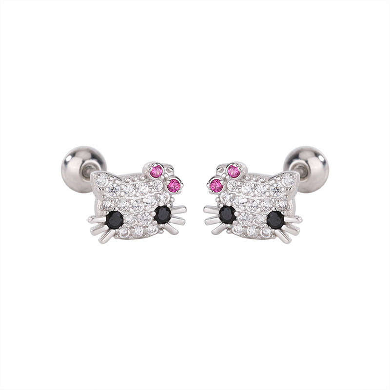 Hello Kitty zircon Stud ต่างหูผู้หญิงน่ารัก Hollow Out หูกระดูกสาวเจาะเครื่องประดับของขวัญ
