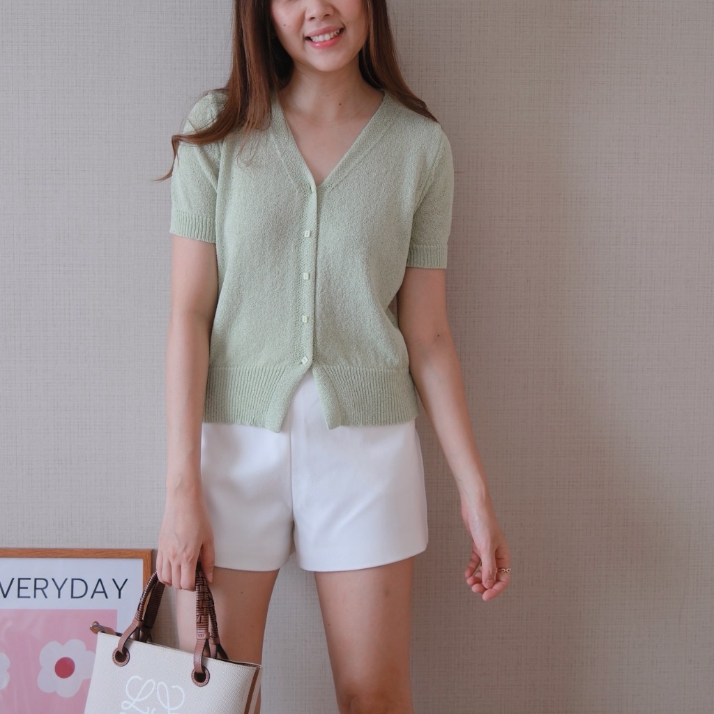 Texture knit Top งานสวยแพง ลุคคุณหนูมากๆรุ่นนี้ เสื้อไหมพรมคอวี