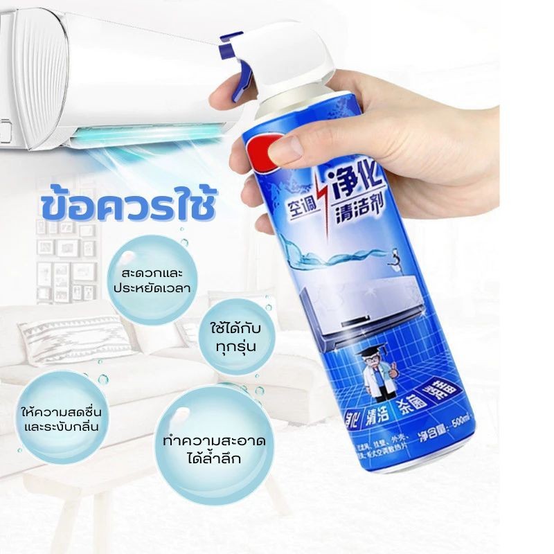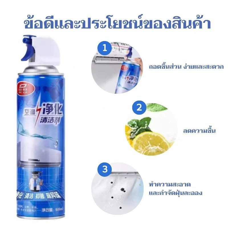 รายละเอียดสินค้า โฟมล้างแอร์ 500ML กลิ่นมิ้นท์ ทำความสะอาดแอร์ สเปรย์ล้างแอร์ น้ำยาแอร์ ล้างแผงคอยล์ แอร์บ้าน ล้างแอร์เอง
