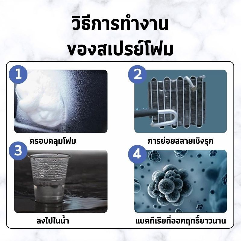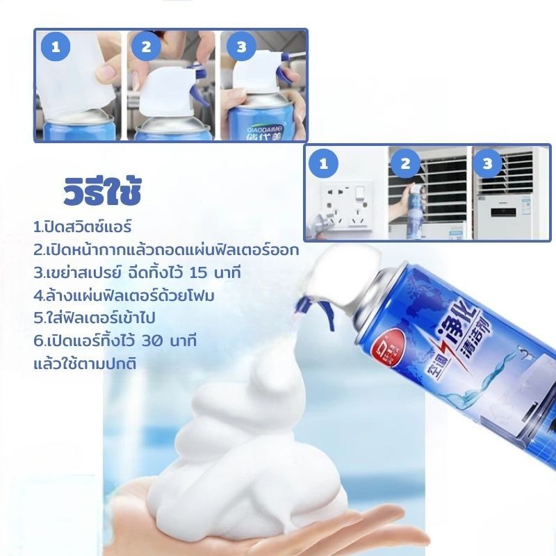 โฟมทำความสะอาดแอร์ โฟมสำหรับล้างแอร์ กลิ่นมิ้นสดชื่น ใช้ล้างแอร์ สเปรย์ล้างแอร์ กำจัดเชื้อแบคทีเรีย ขนาด 500 mlขั้นตอนการทำความสะอาด