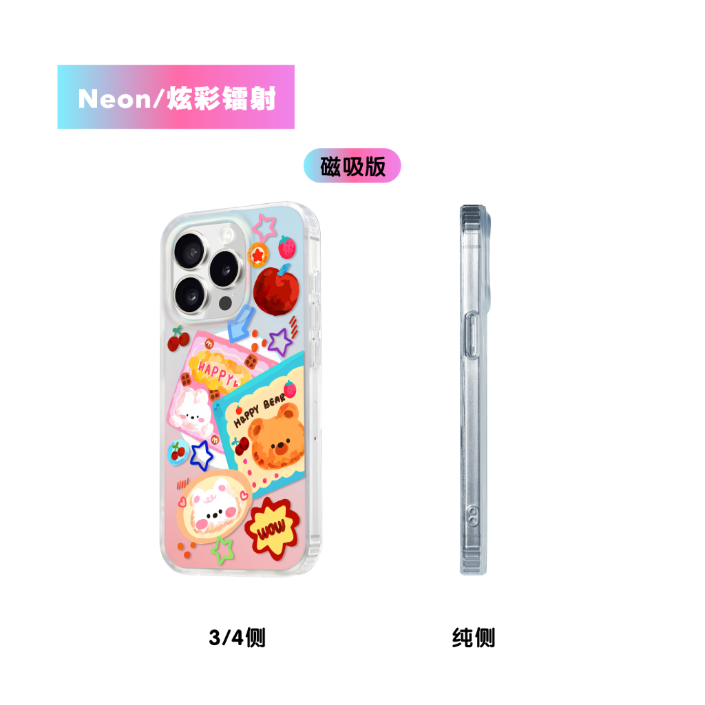 เหมาะสําหรับ ไอโฟน 13 14 15 16 มือโปร สูงสุด บวก สี่มุมในตัวกันกระแทกถุงลมนิรภัยส่วนบุคคลเลเซอร์ที่มีสีสันแม่เหล็กกรณีโทรศัพท์-สุดน่ารักการ์ตูนเพื่อนชุ