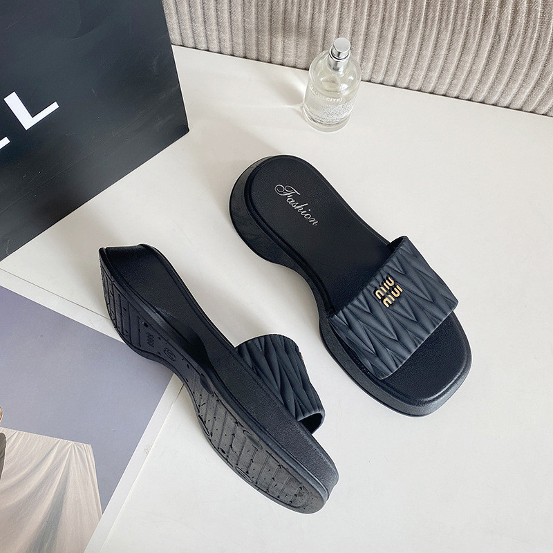รองเท้าแตะผู้หญิงส้นสูง พื้นหนา นุ่มสบาย แฟชั่น ใส่นอกบ้าน รองเท้าแตะส้นหนา แมทช์ง่าย ใส่ได้ทุกลุค ฤดูร้อน 2025