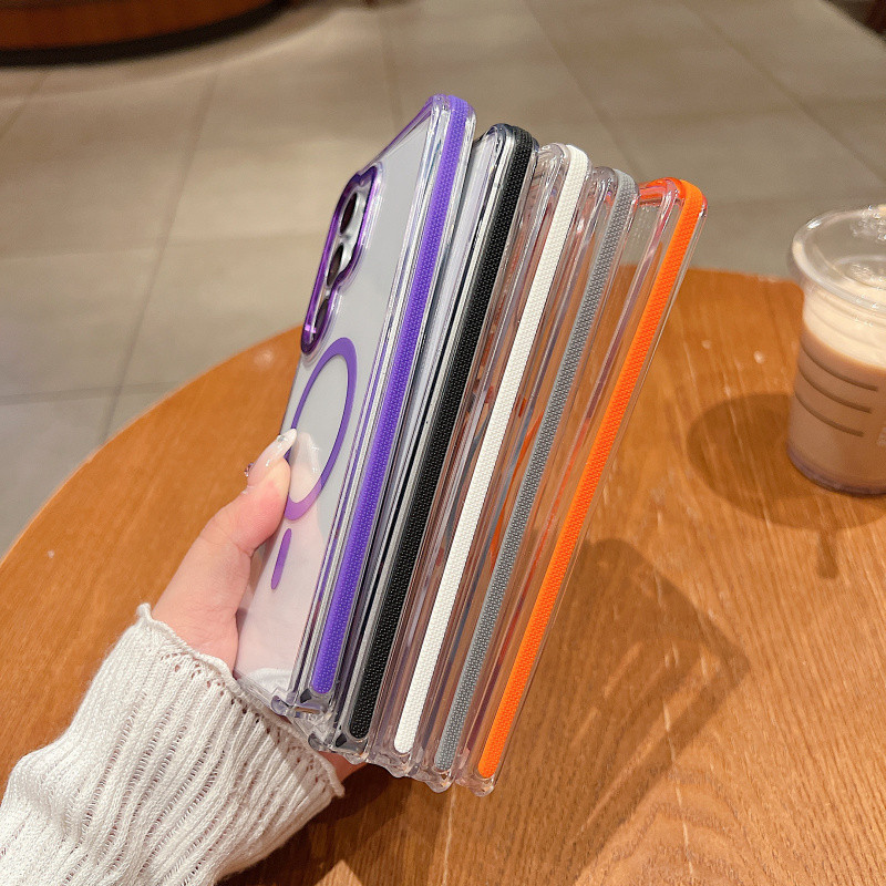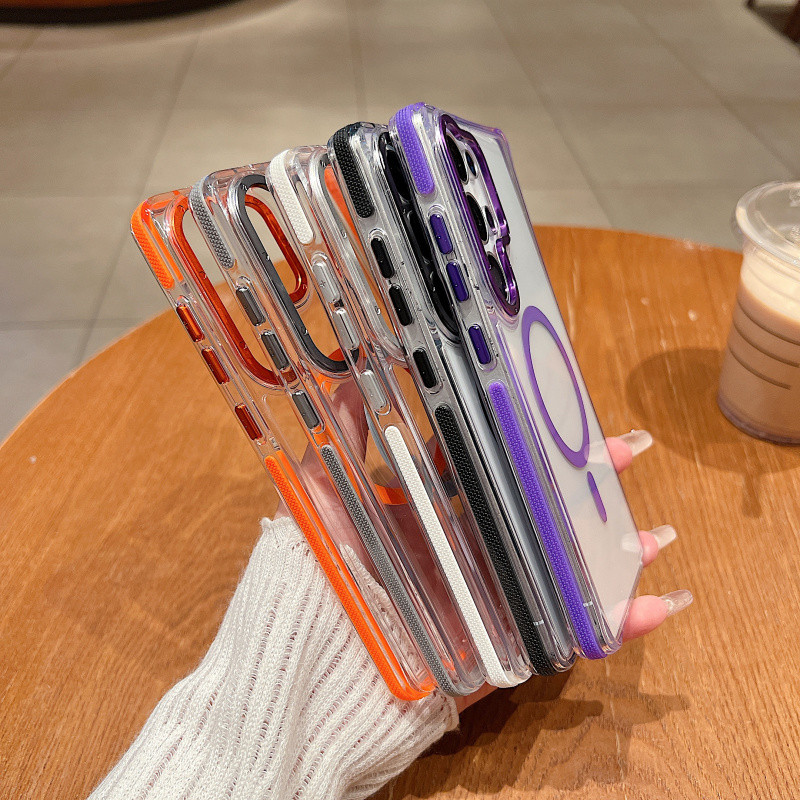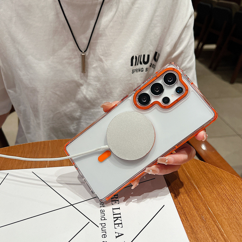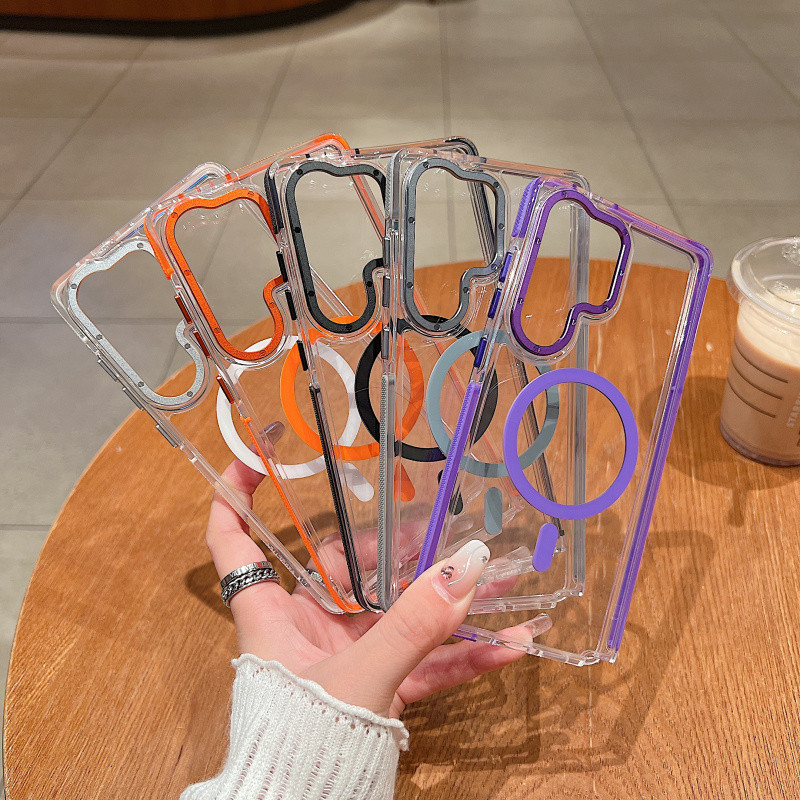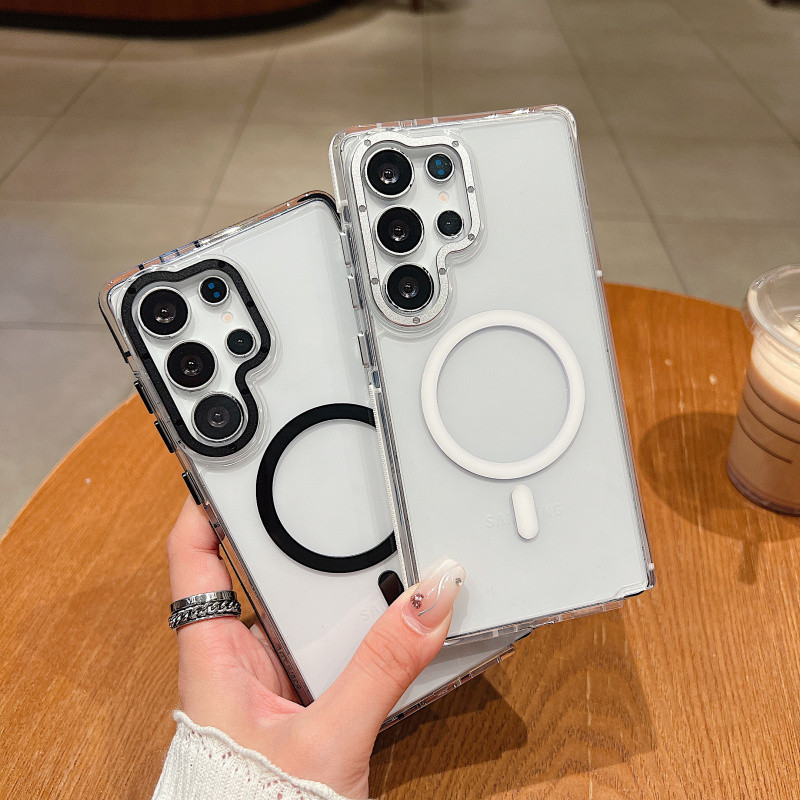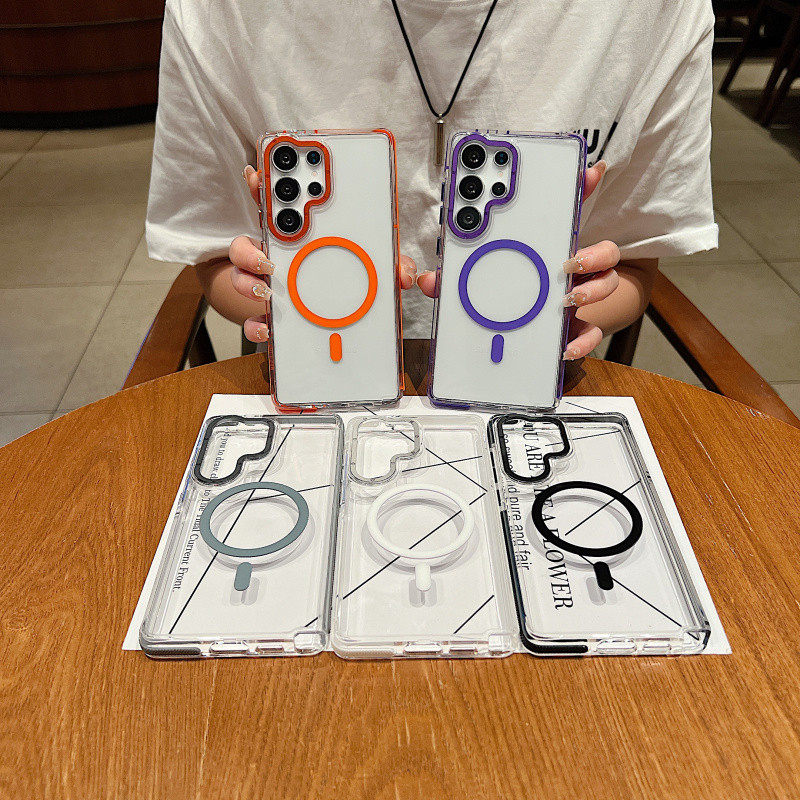 หรูหราสองสีแม่เหล็กชาร์จไร้สายเคสใสสําหรับ Samsung Galaxy S25 Ultra Plus S24 S23 Ultra Plus Simple Clear Hard กันกระแทกป้องกันปกหลัง