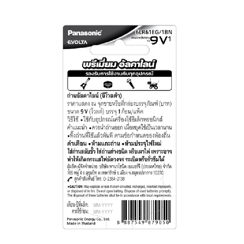 PANASONIC ถ่านอีโวต้า 9V รุ่น 6LR61EG/1BN (1 ก้อน)