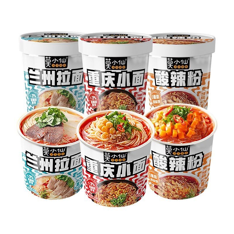 莫小仙重庆小面酸辣粉桶装兰州拉面夜宵速食非油炸泡面方便面整箱Mo Xiaoxian Chongqing Xiaomian Sour and Spicy Noodles in Barrels Lanzhou La20250609