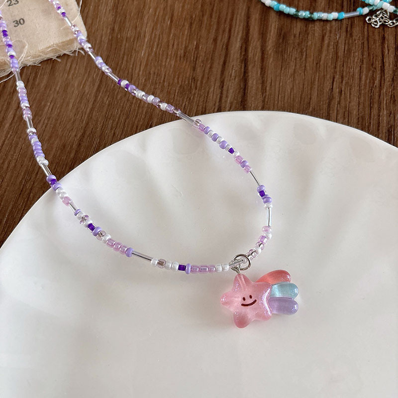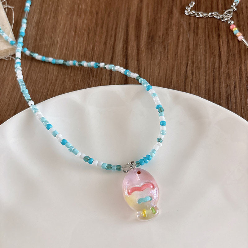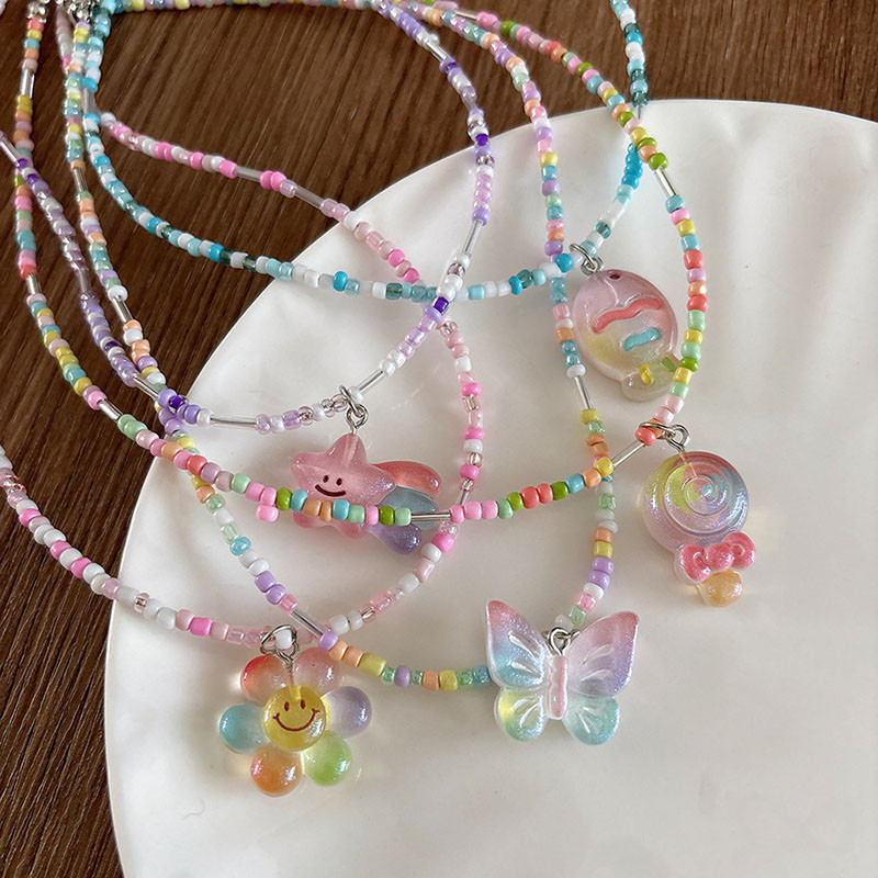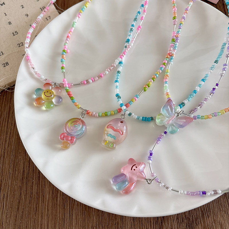 สร้อยคอลูกปัดทำด้วยมือที่มีสีสันผู้หญิงโดพามีนจี้การ์ตูนน่ารักปลอกคอโซ่ทำด้วยมือที่มีสีสัน