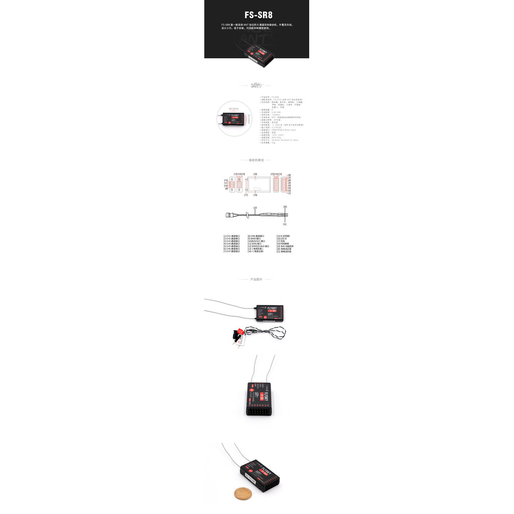 ตัวรับสัญญาณ FLYSKY FS-SR8 8 ช่องสำหรับรีโมทคอนโทรล G7P G11P ST16 ANT SR8