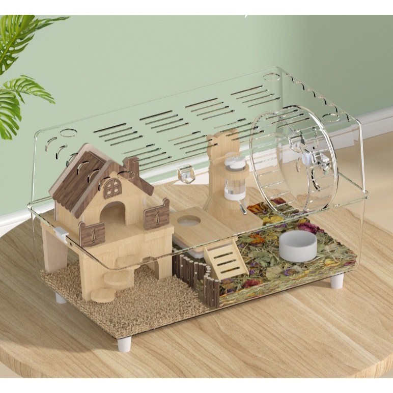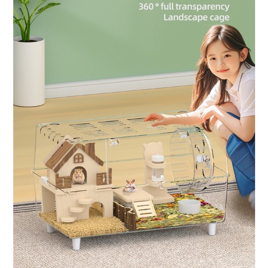 กรงหนูแฮมสเตอร์ อะคริลิคขนาดใหญ่ โปร่งใส บ้าน ดอร์เมาส์ เม่นแคระ กรงสัตว์เลี้ยง ทําความสะอาดง่าย พร้อมส่ง