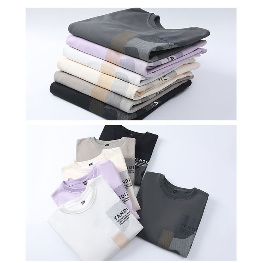 เสื้อยืดแขนยาวผู้ชายสำหรับฤดูใบไม้ผลิและฤดูใบไม้ร่วง ออกแบบใหม่ พิมพ์รอบคอดูเก๋ไก๋